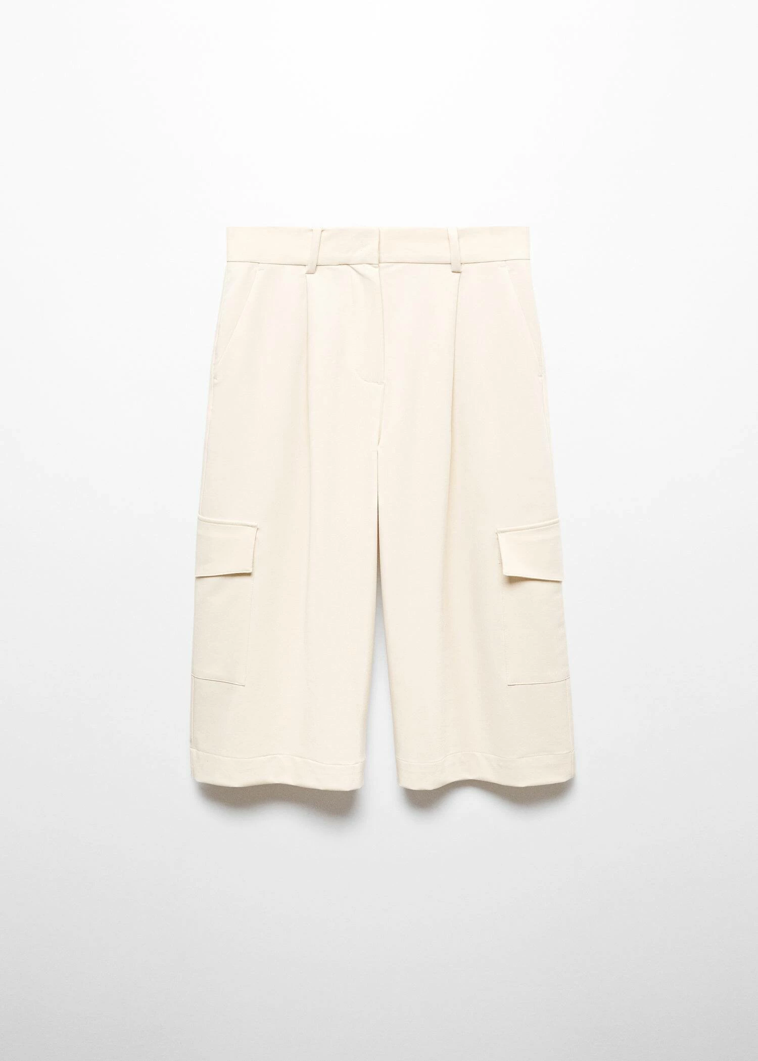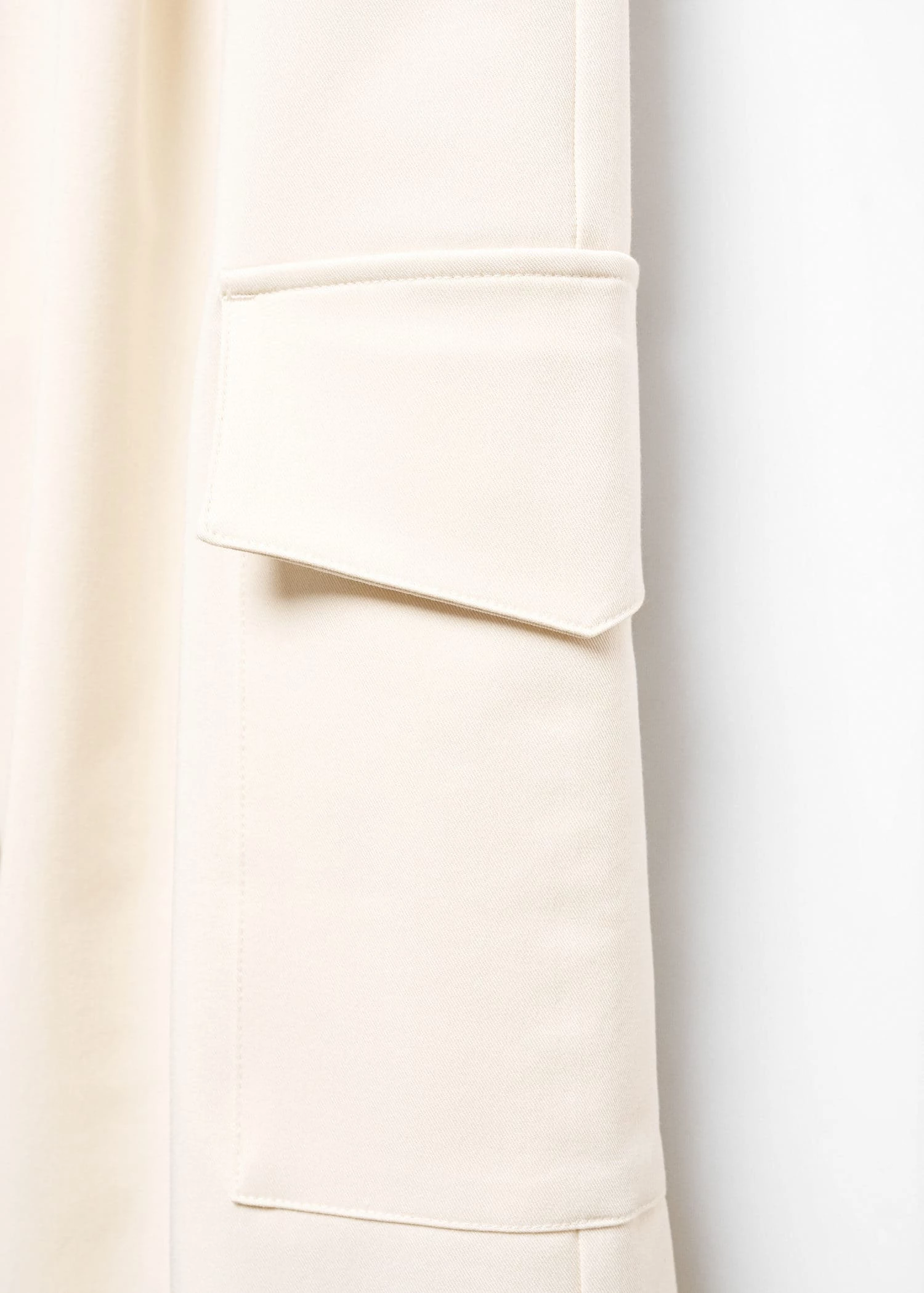 droit, coupe longue, passants pour la ceinture, deux poches cargo, poches laterales, deux poches passepoilees a l’arriere, fermeture eclair avec crochet et bouton dissimulesComposition: 76% polyester,17% viscose,7% elasthanne. Doublure: 100% coton