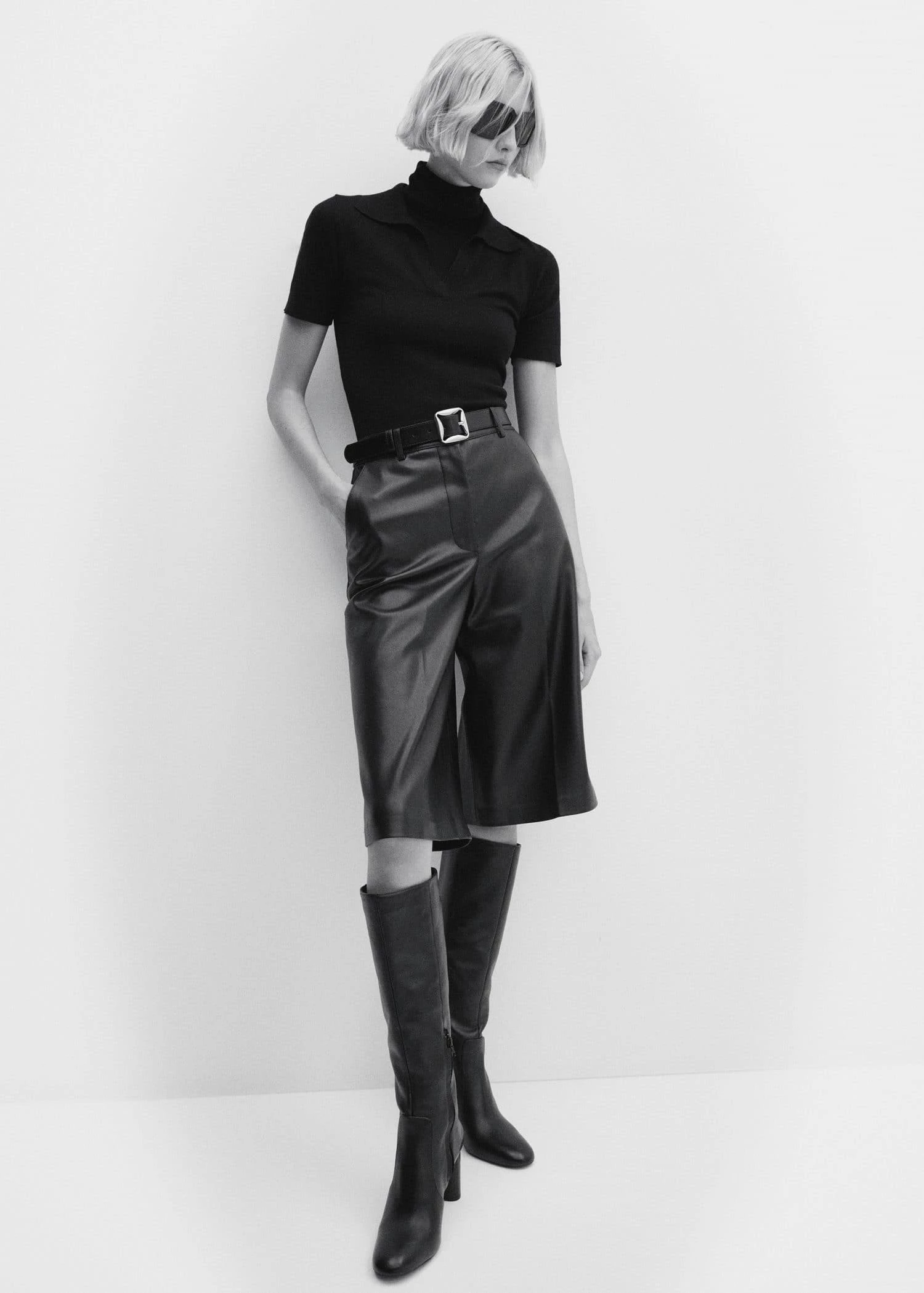 tissu fluide, coupe midi, coupe droite, similicuir, deux poches laterales, deux poches passepoilees a l’arriere, fermeture eclair avec crochet, passants de ceinture , detail plisse, doublureComposition: 100% polyester. Revêtement: 100% polyurethane. Doublure poches: 100% polyester