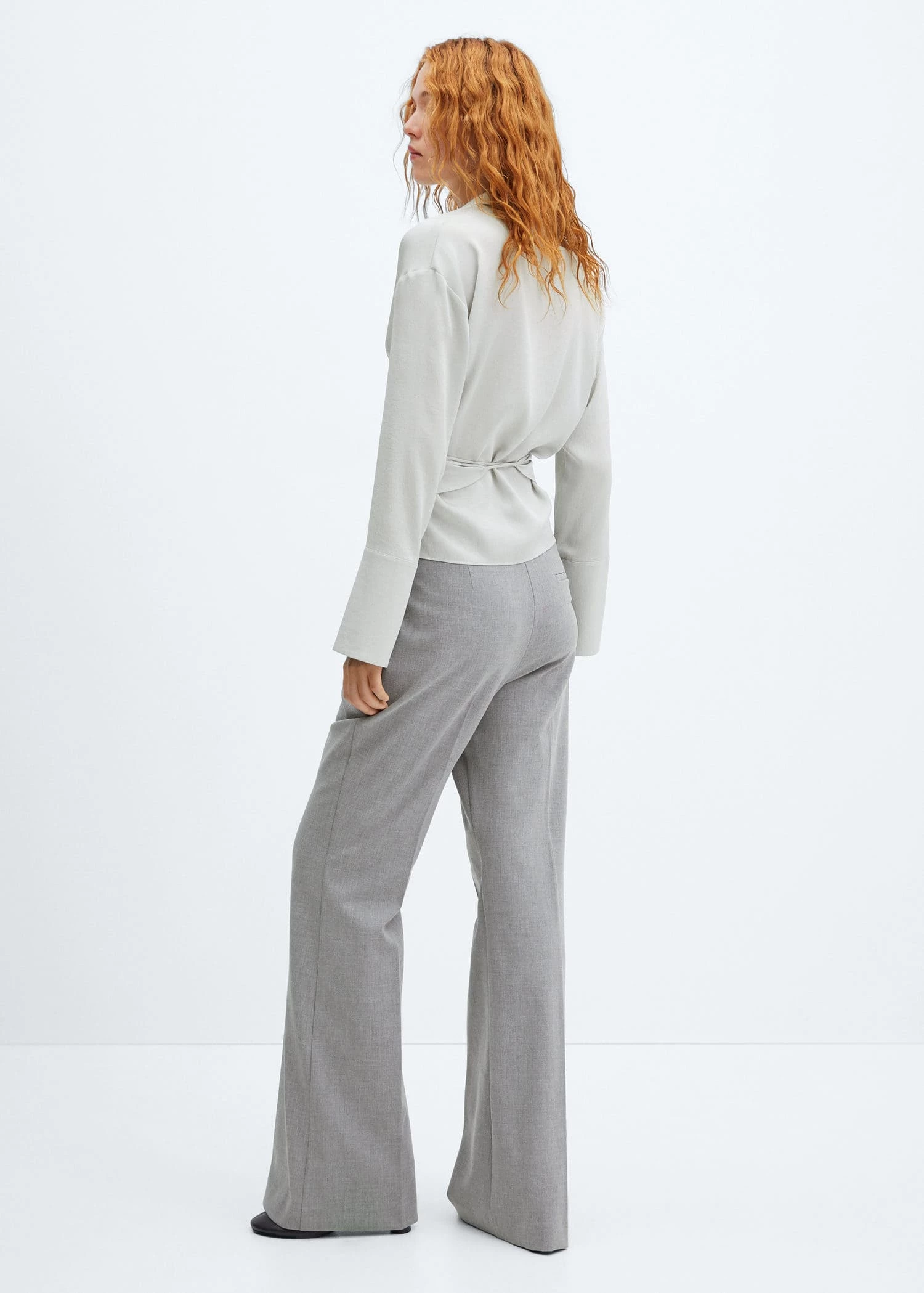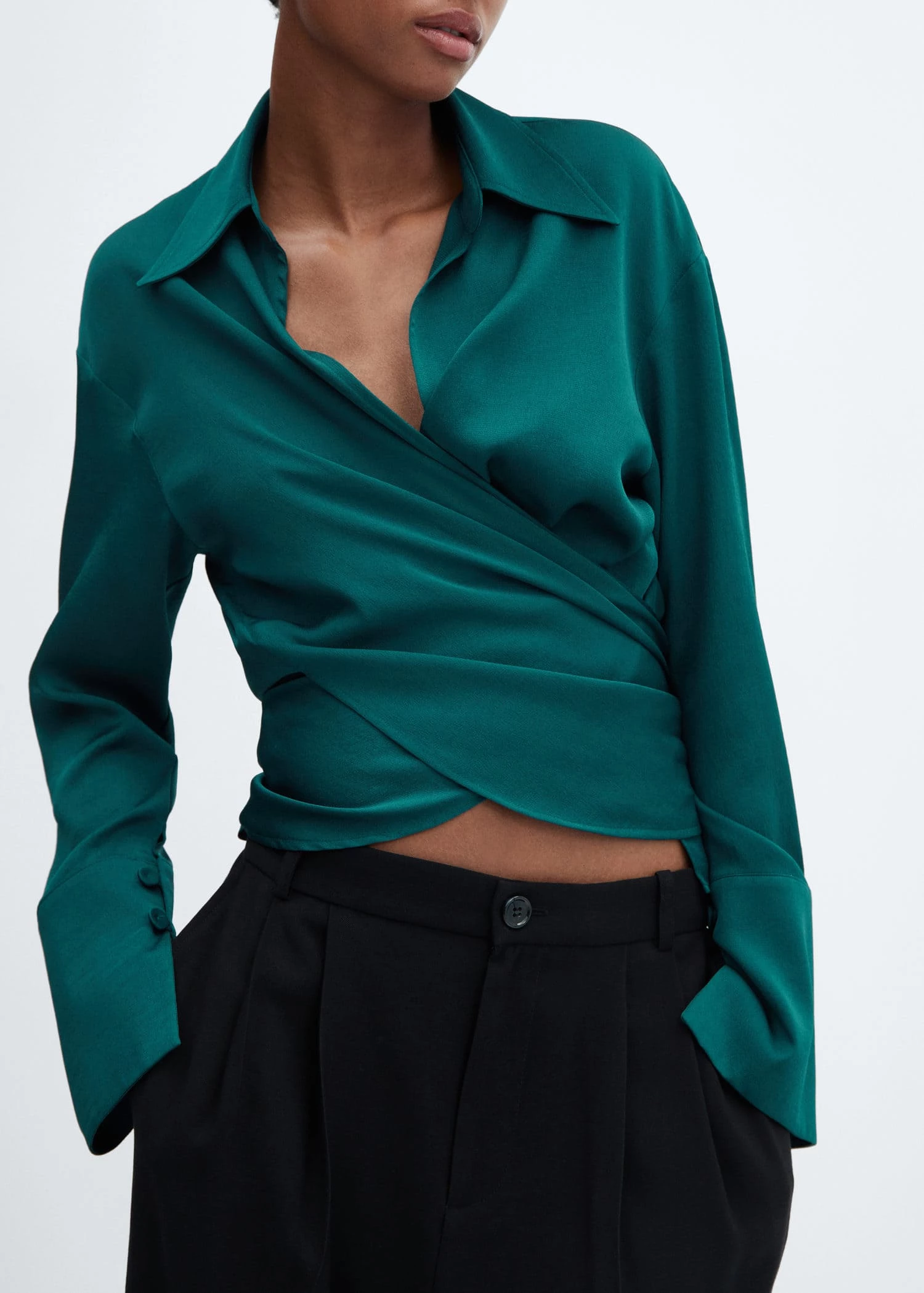 tissu fluide, croise, ajuste, effet satine, col chemise en v, manches longues avec poignets boutonnes, ruban a la taille avec fermeture a nœudComposition: 100% polyester
