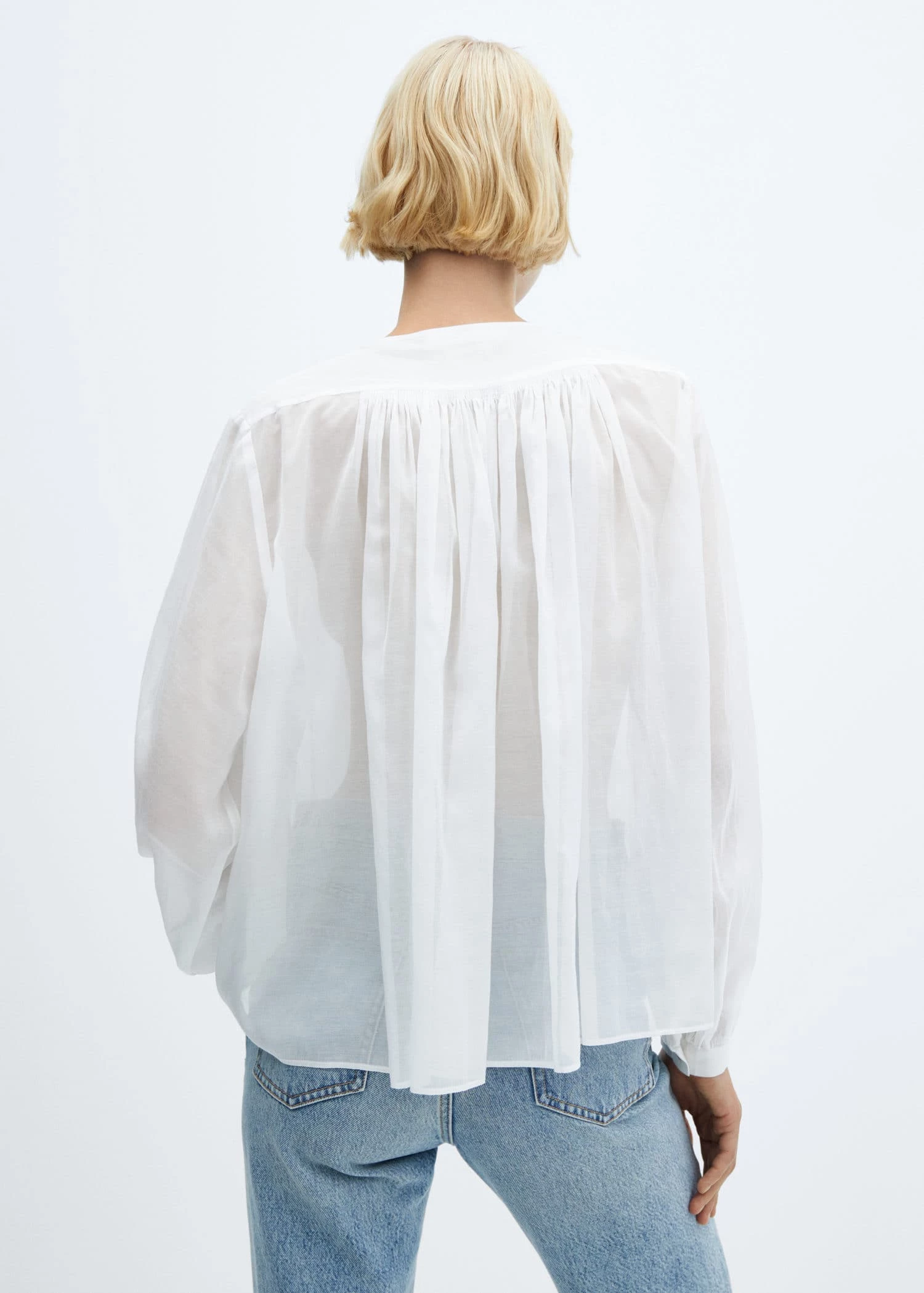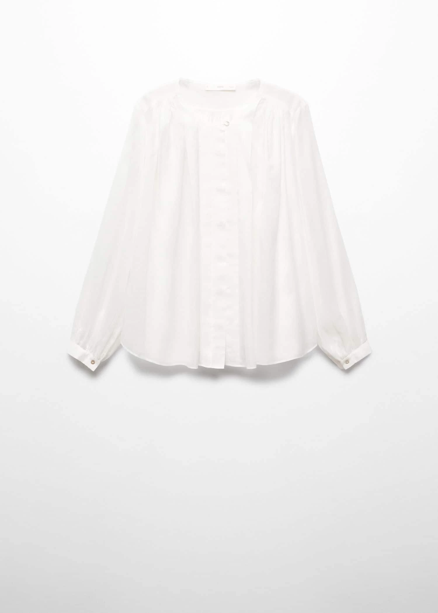 tissu de coton melange, style oversize, coupe longue, col rond, manches longues avec poignets boutonnes, manches bouffantes, fermeture a boutons sur le devant, detail fronce, sans doublure interieureComposition: 52% viscose,48% coton