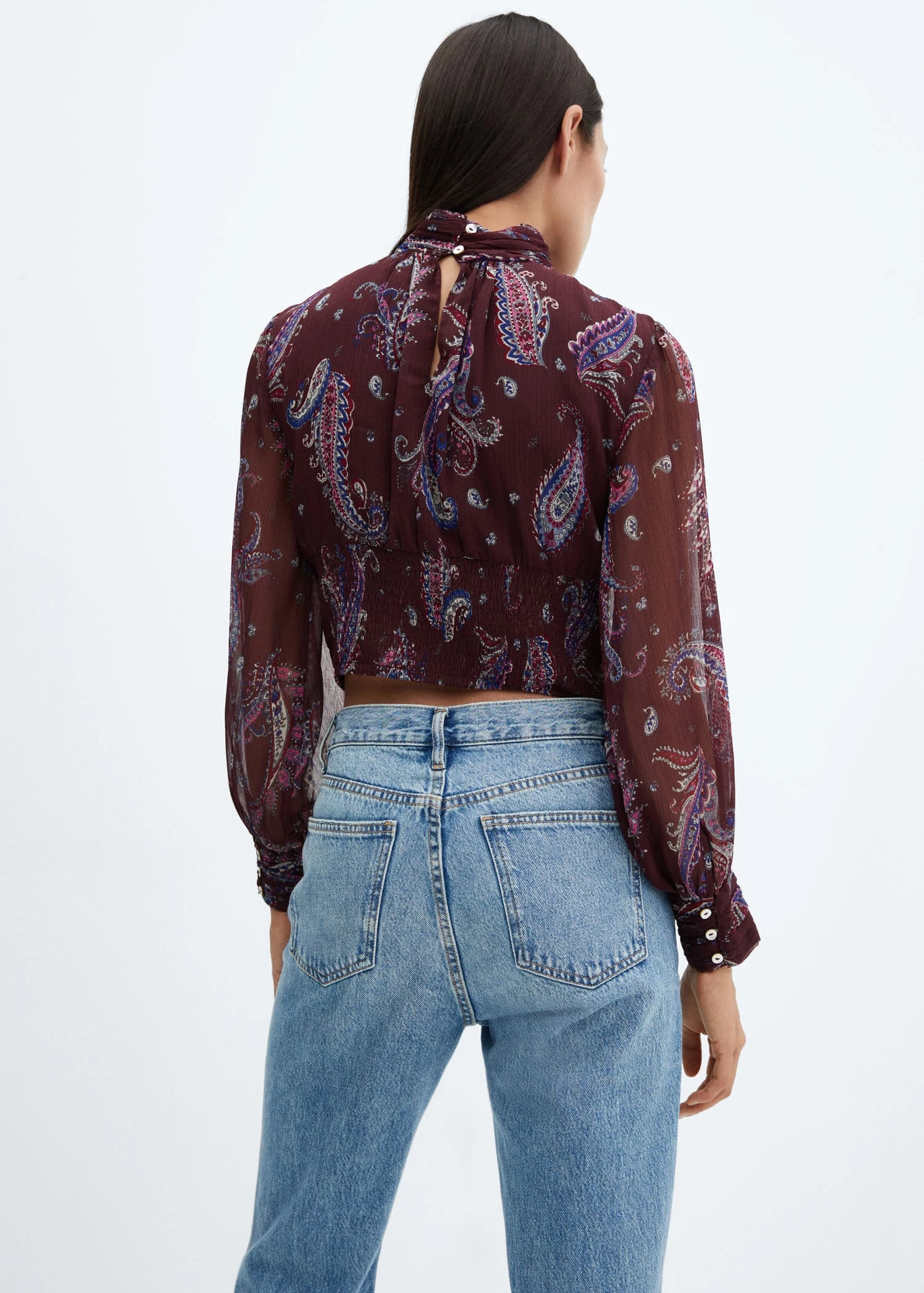 Blouse En Imprimé Cachemire Manches Bouffantes