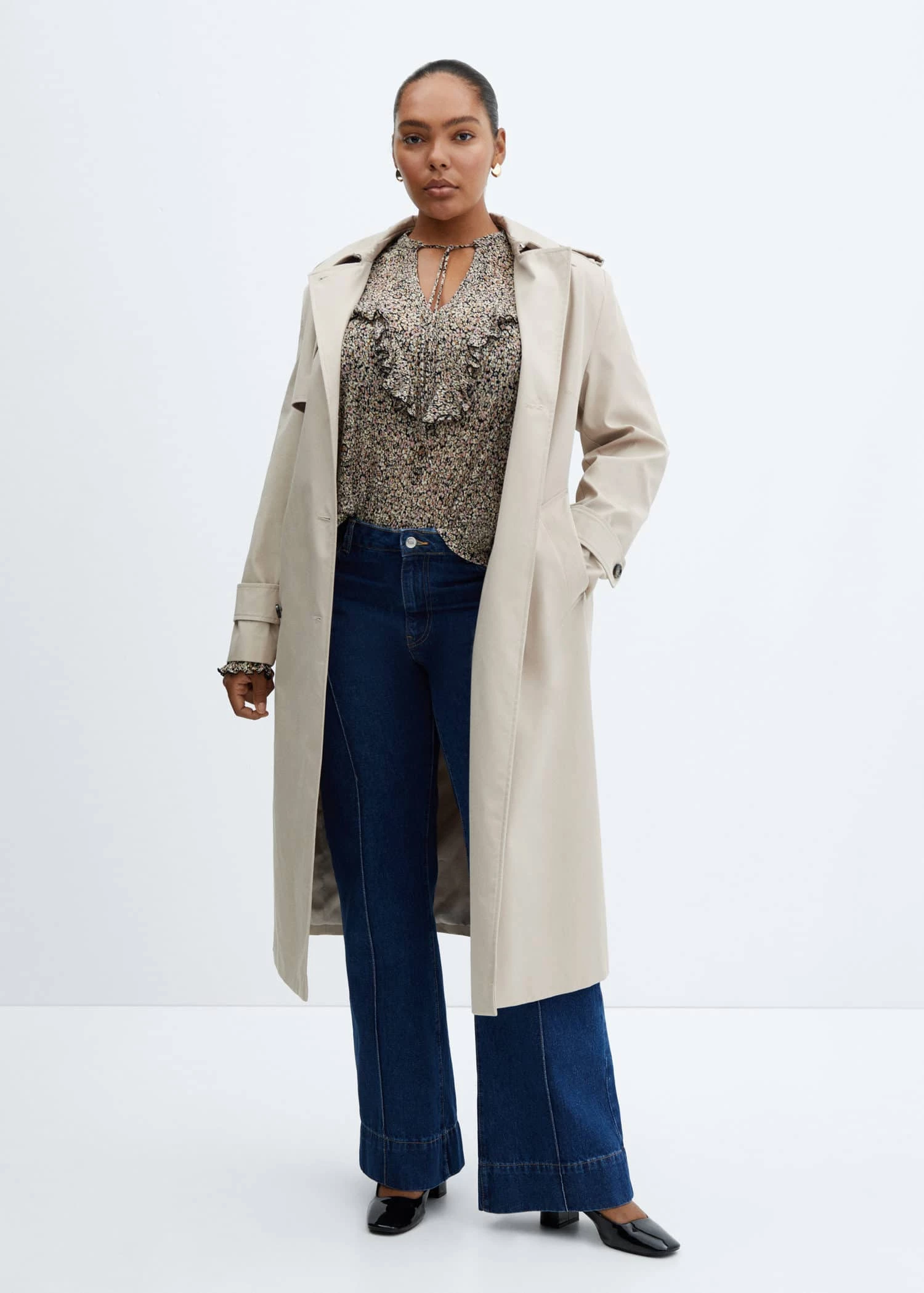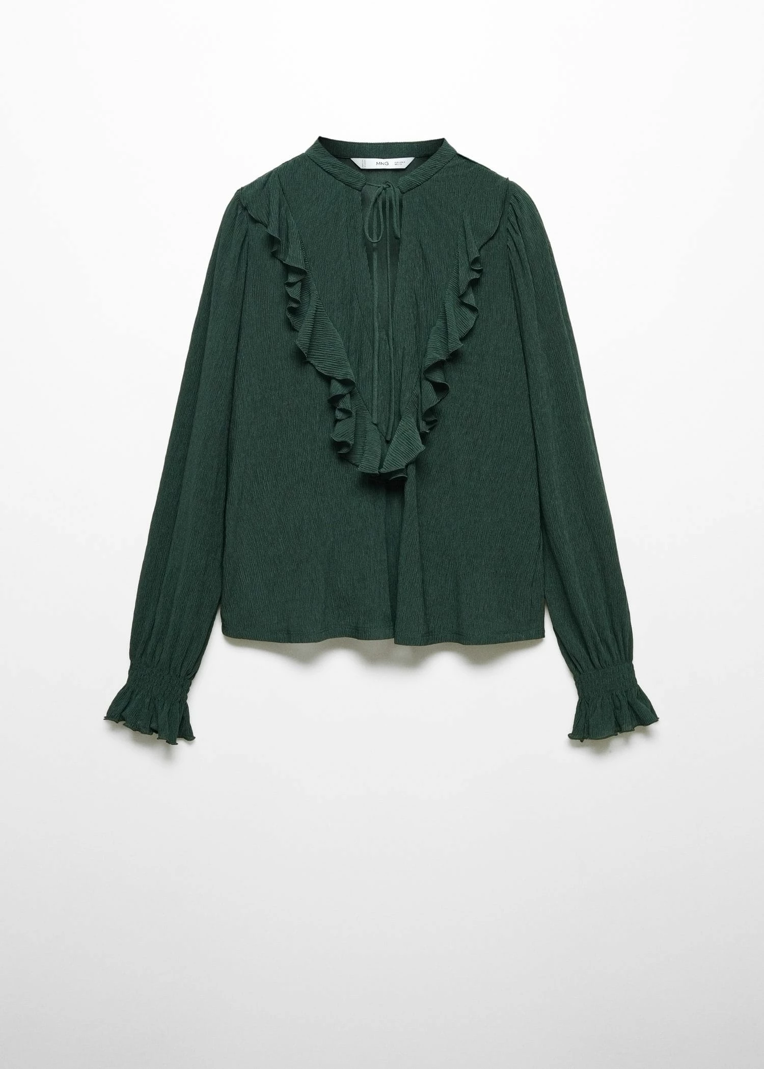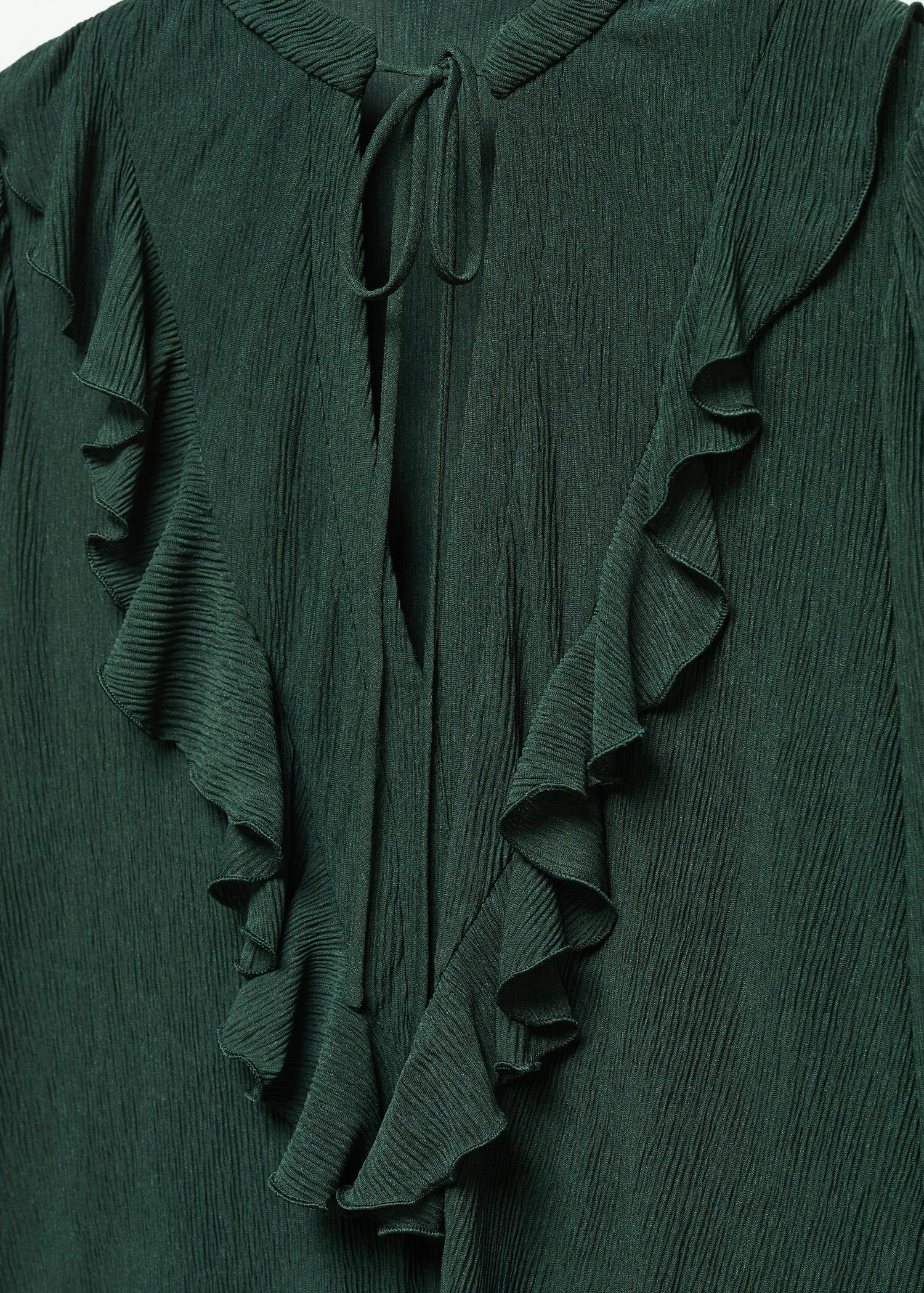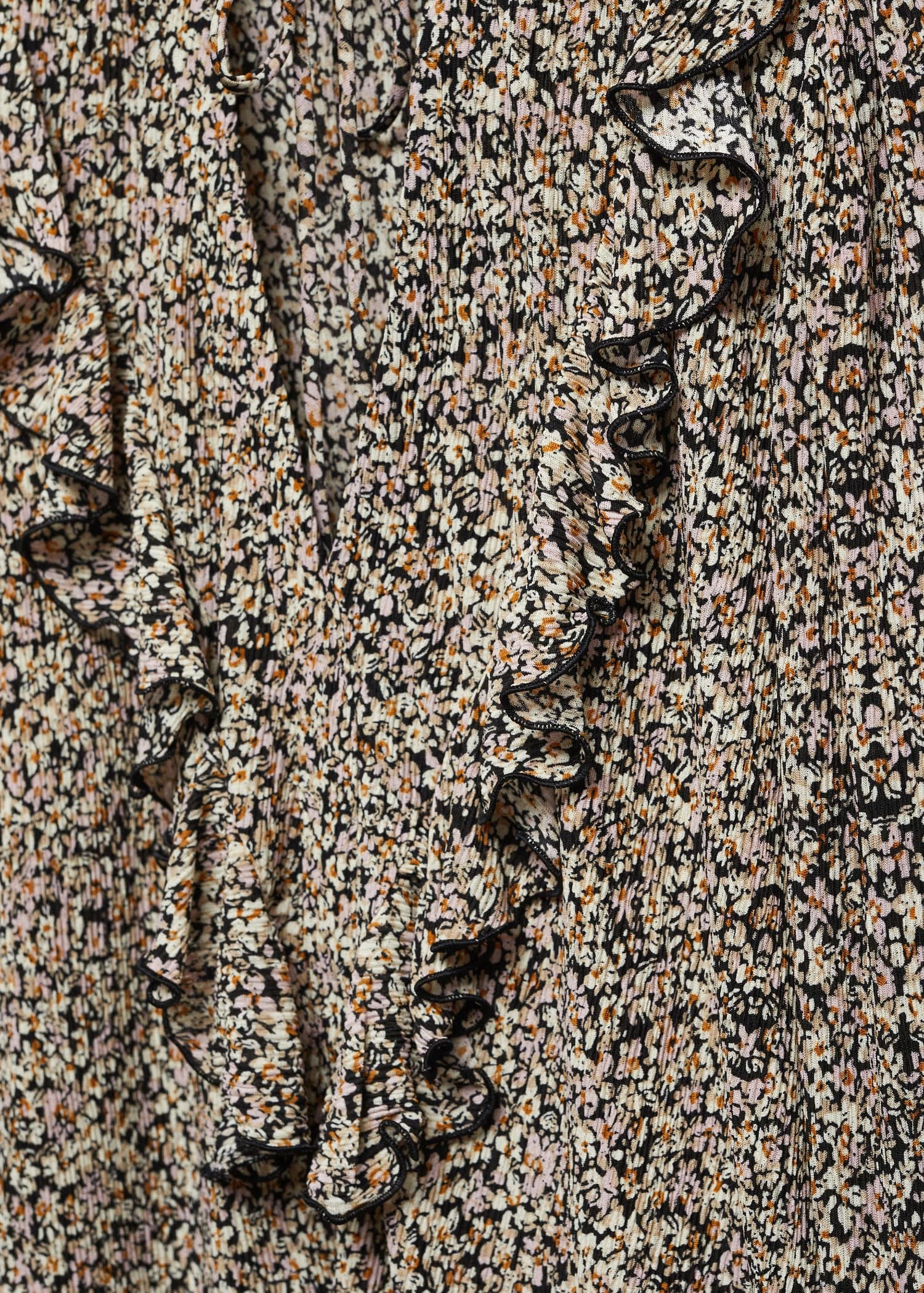 tissu fluide, coupe droite, imprime floral, col en v, manches longues avec poignets elastiques, lien a nouer autour du cou, detail de volants sur le col, disponible plusComposition: 100% polyester