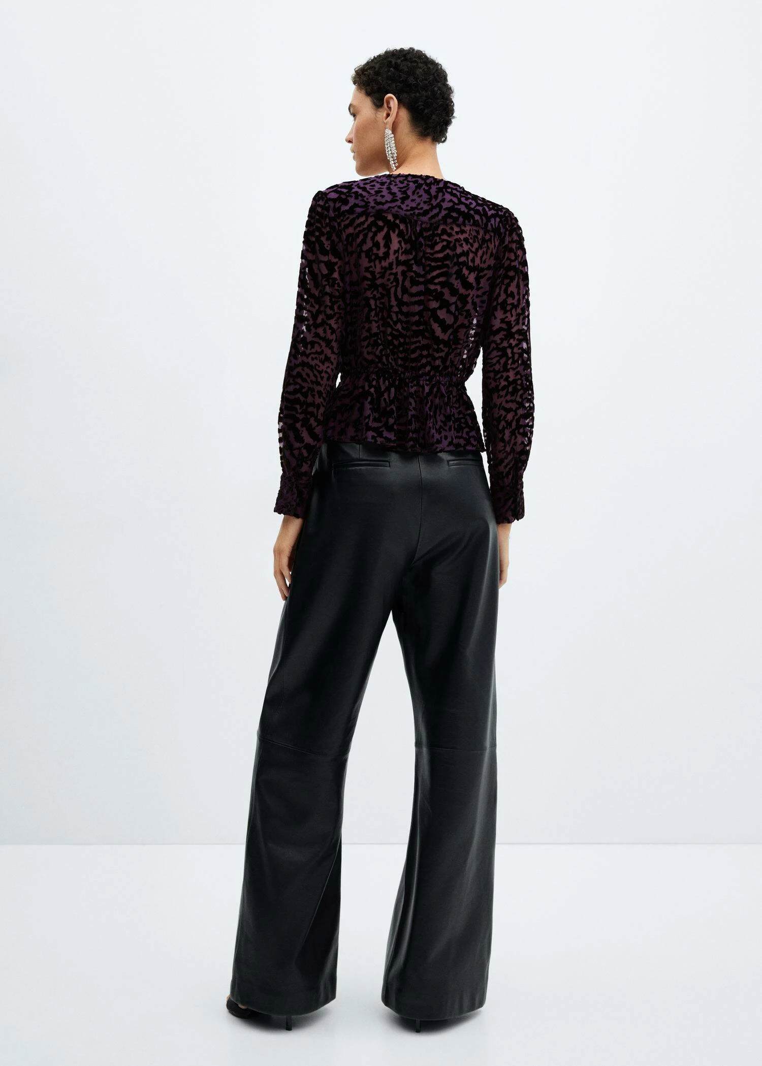 tissu fluide, droit, modele semi-transparent, croise, motif imprime en velours, col en v, manches longues, fermeture a bouton sur le devantComposition: 55% viscose,45% polyamide