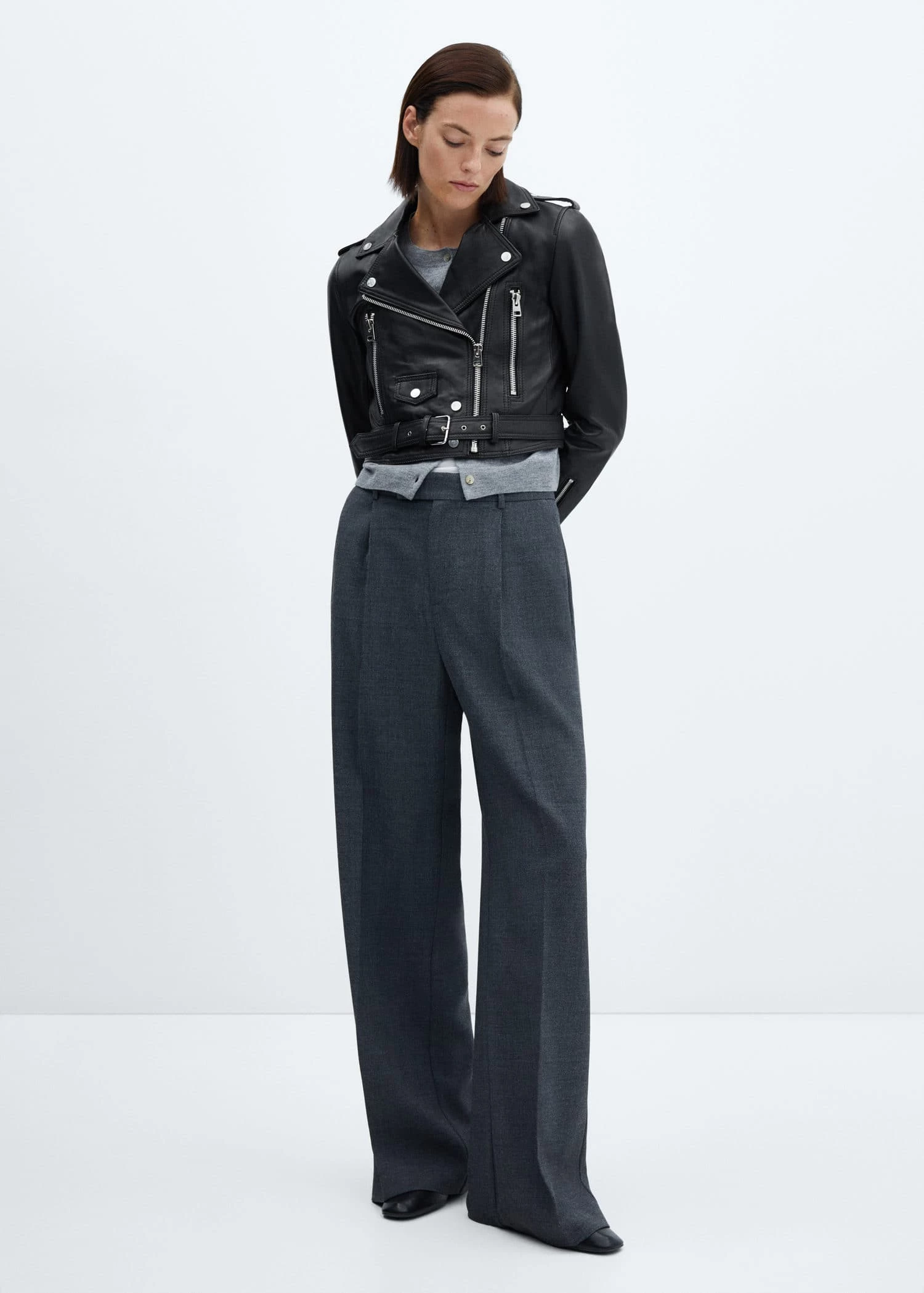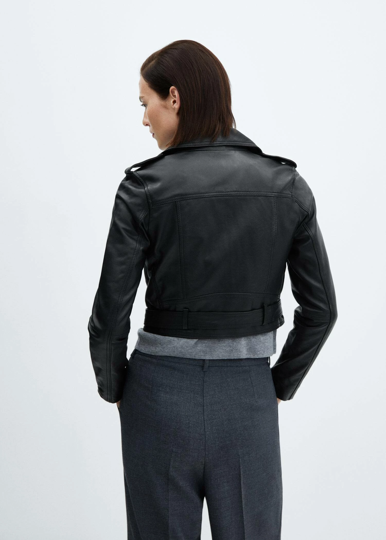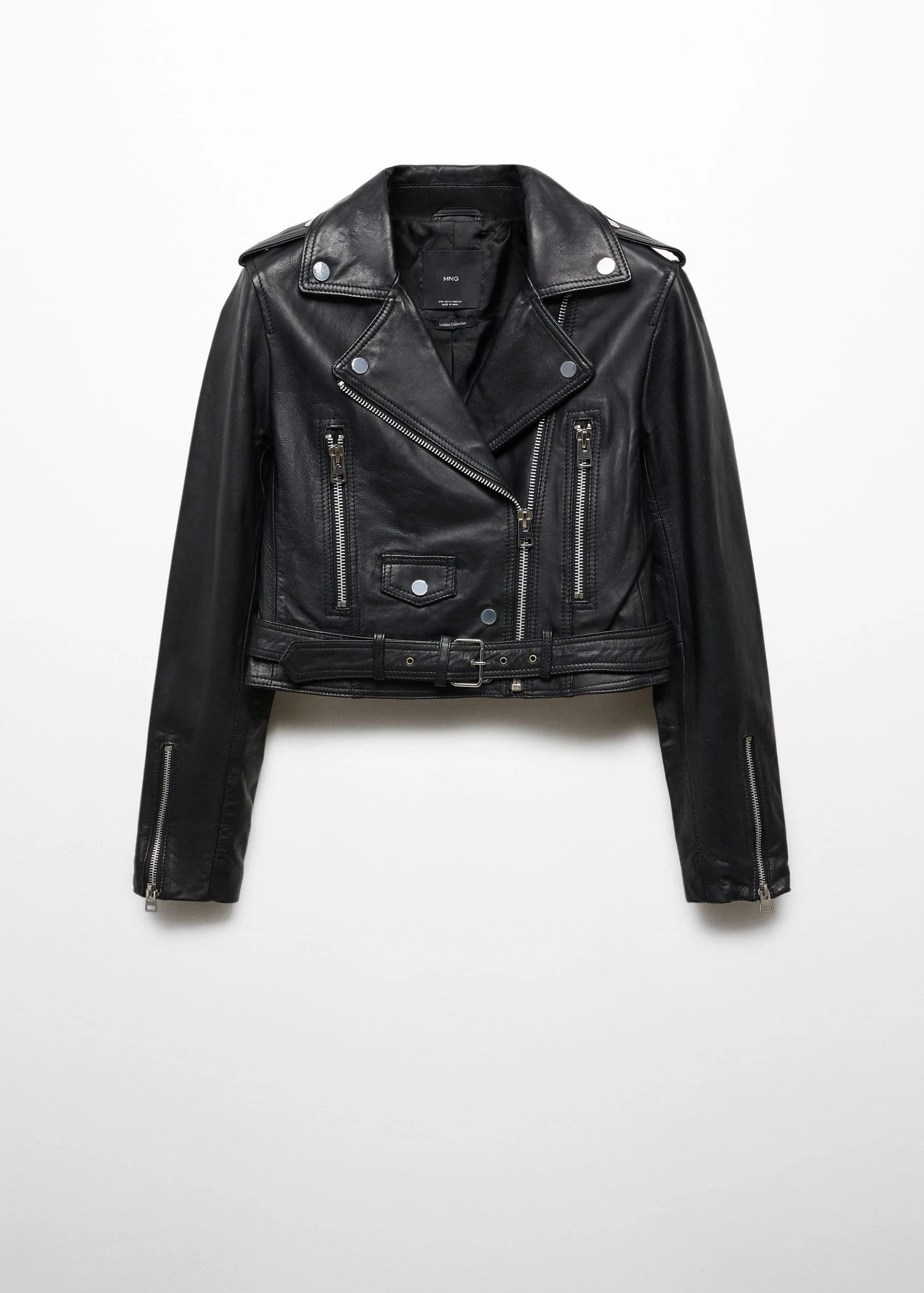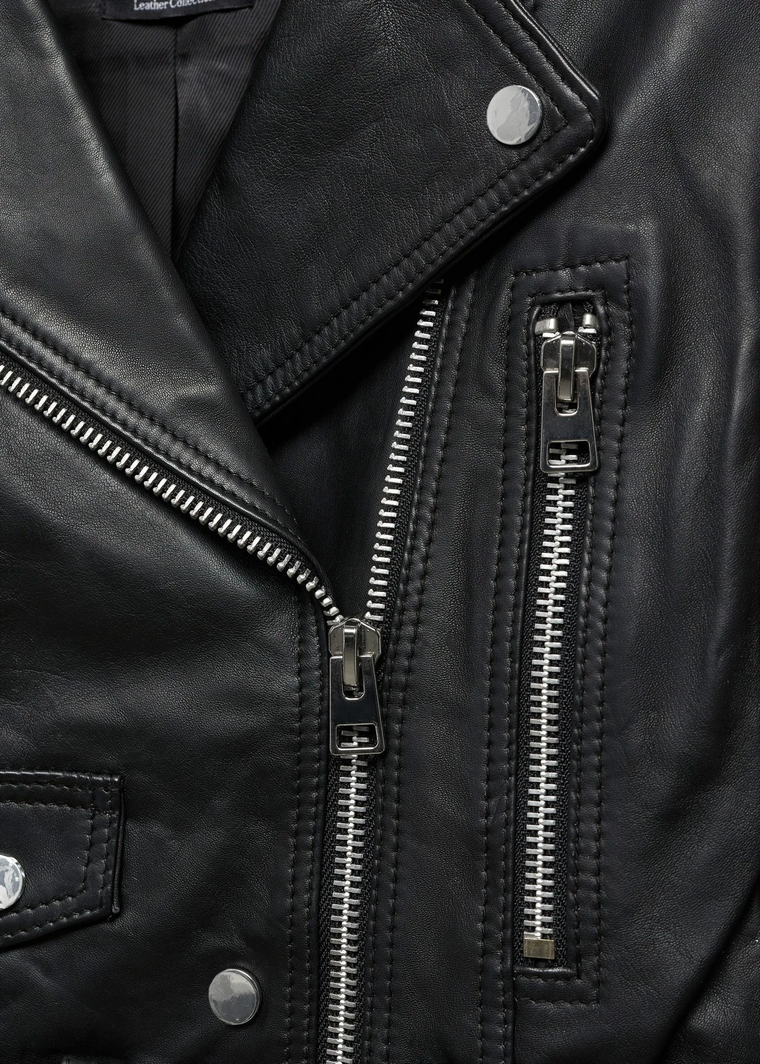 100 % cuir ovin, style biker, coupe courte, col en v avec rabat, manches longues, zip, fermeture eclair a l’avant, boucle reglable, fermetures eclair decoratives, badge decoratif, doublureComposition: 100% cuir ovin. Doublure: 100% polyester