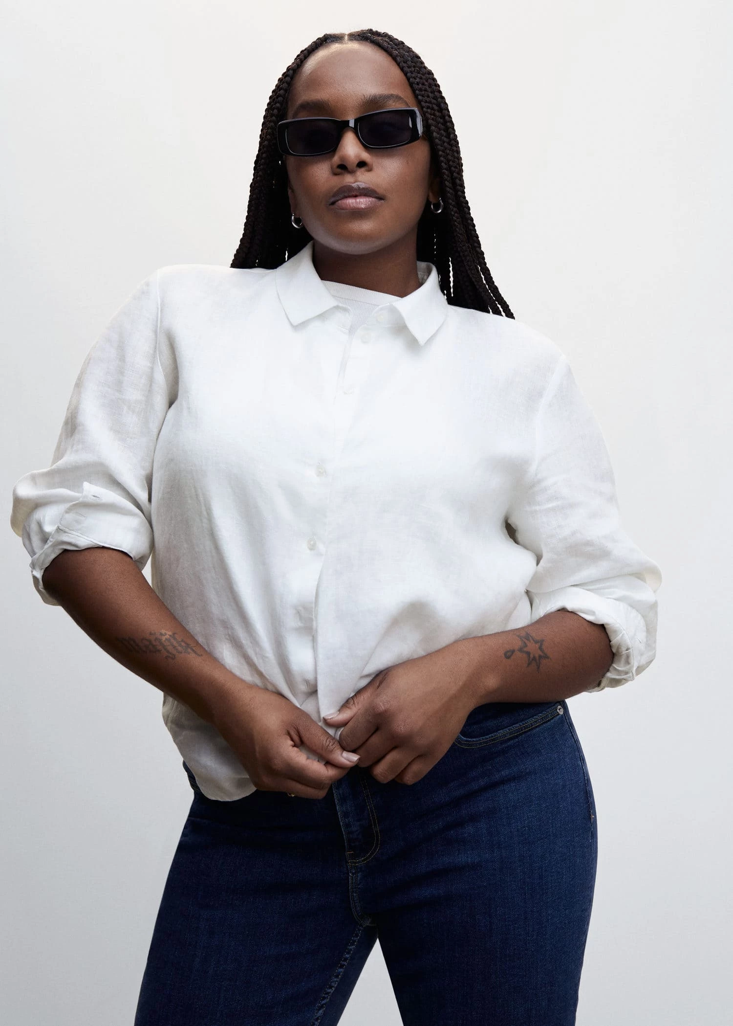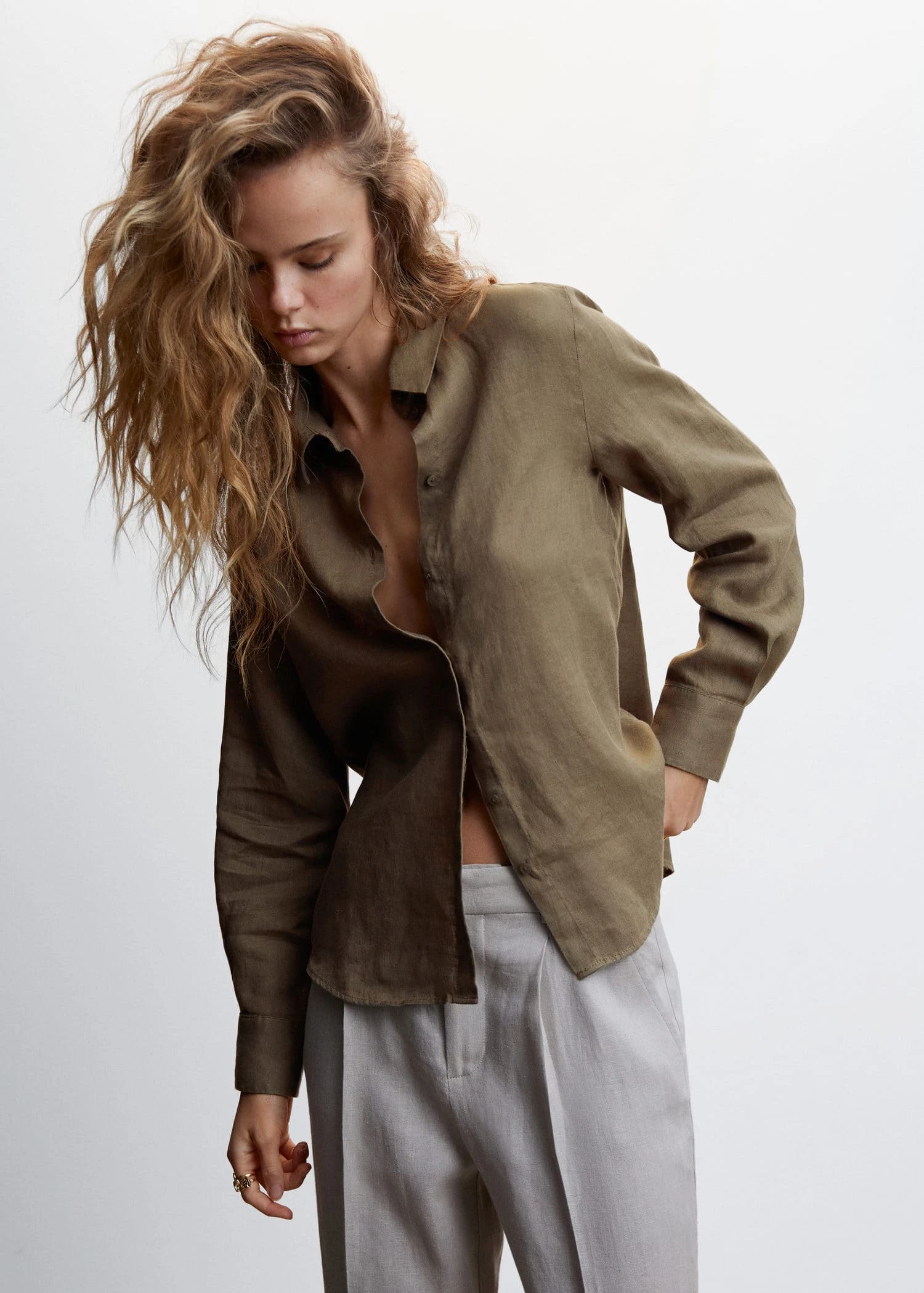 tissu en lin, tissu fluide, droit, col chemise, manches longues avec poignets boutonnes, fermeture boutonnee sur le devant, disponible plusCOMPOSITION:100% LIN