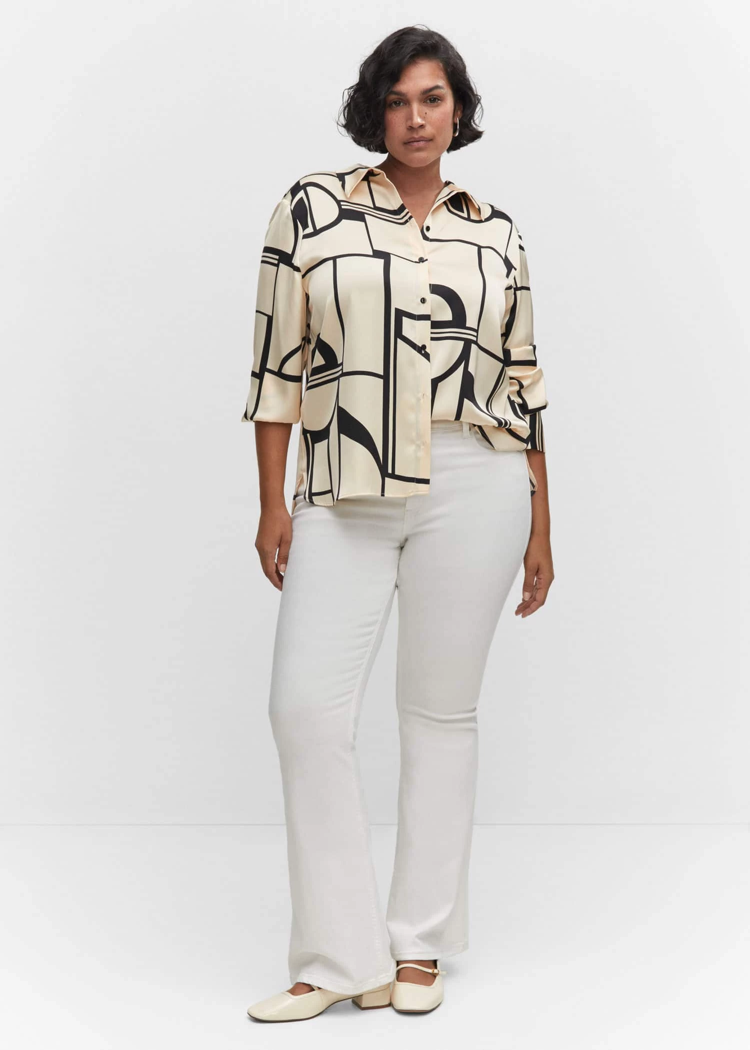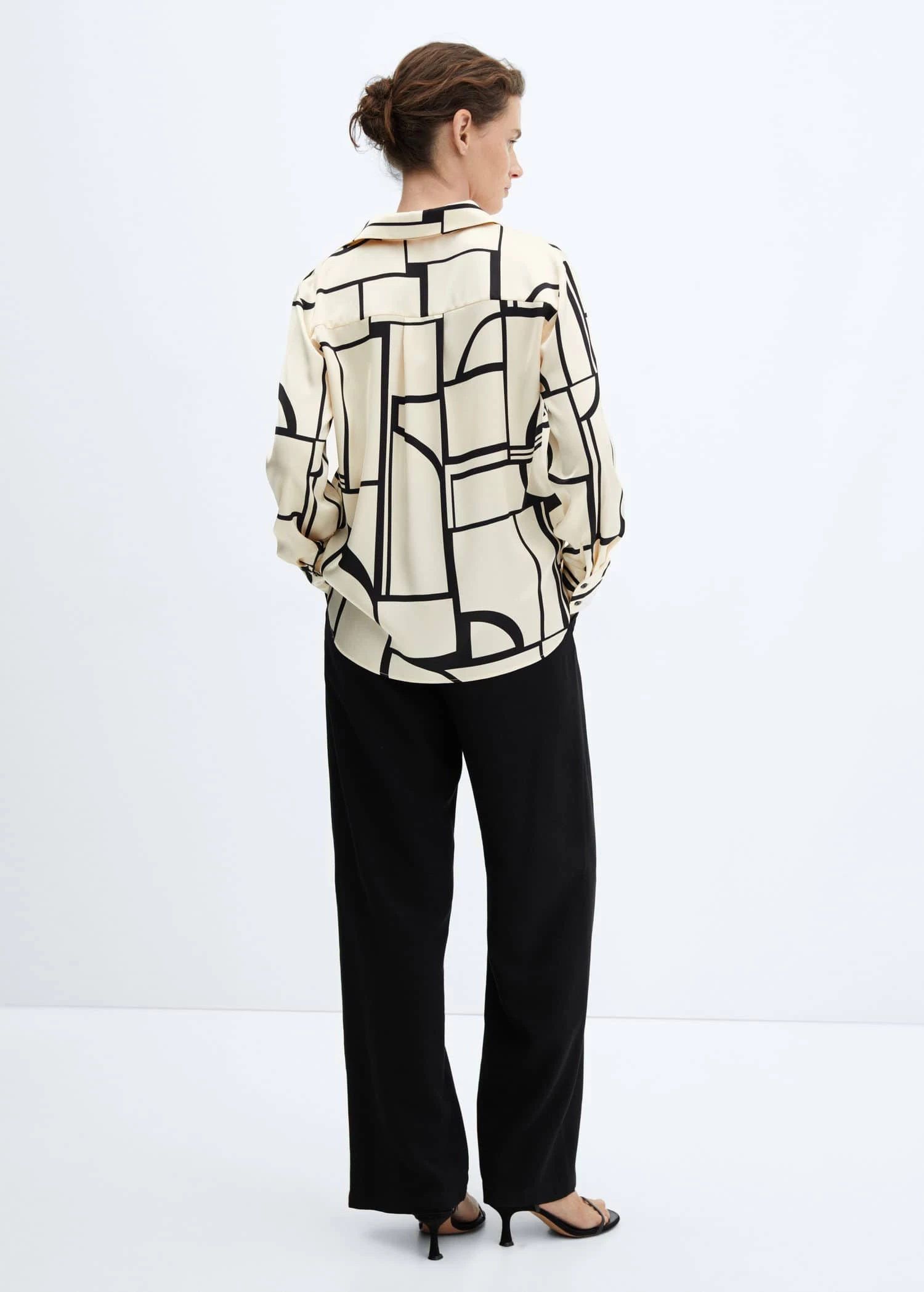 tissu satine, tissu fluide, droit, col chemise, imprime geometrique, manches longues boutonnees, fermeture boutonnee sur le devant, disponible plusComposition: 100% polyester
