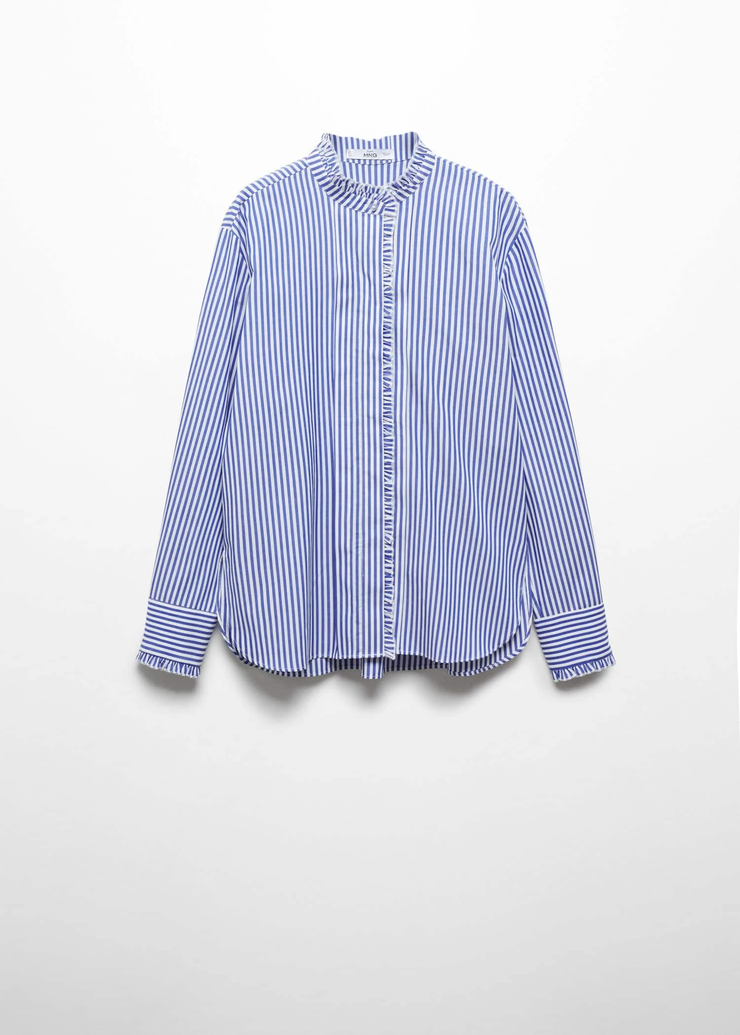 100 % coton, coupe droite, col officier, manches longues avec poignets boutonnes, fermeture a boutons dissimulee sur le devant, detail volante a l’avantComposition: 100% coton