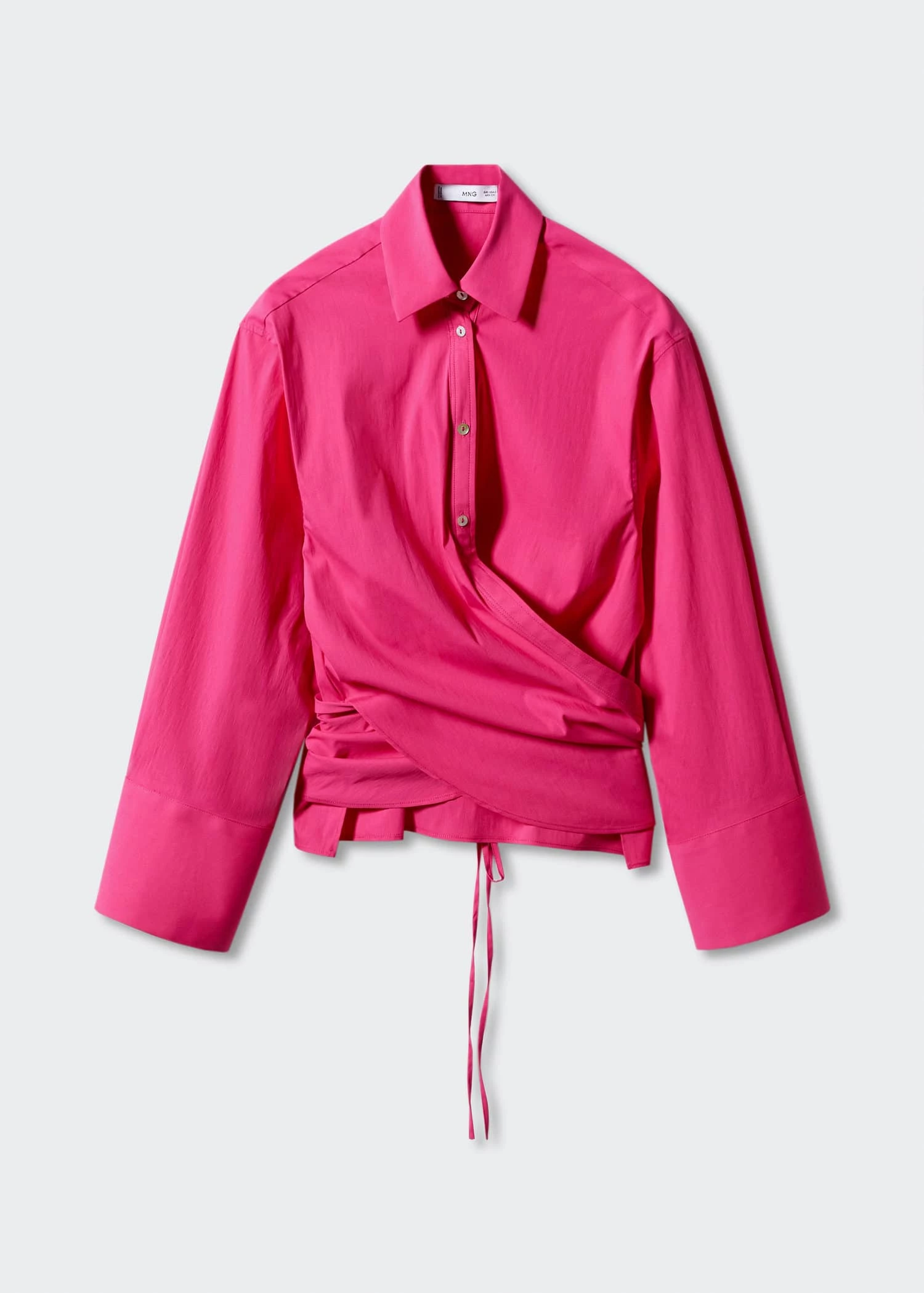 tissu de coton melange, croise, ajuste, col chemise, manches longues cloche, poignets boutonnes, fermeture boutonnee sur le devant, fermeture a nœud a l’arriereComposition: 82% coton,15% polyamide,3% elasthanne