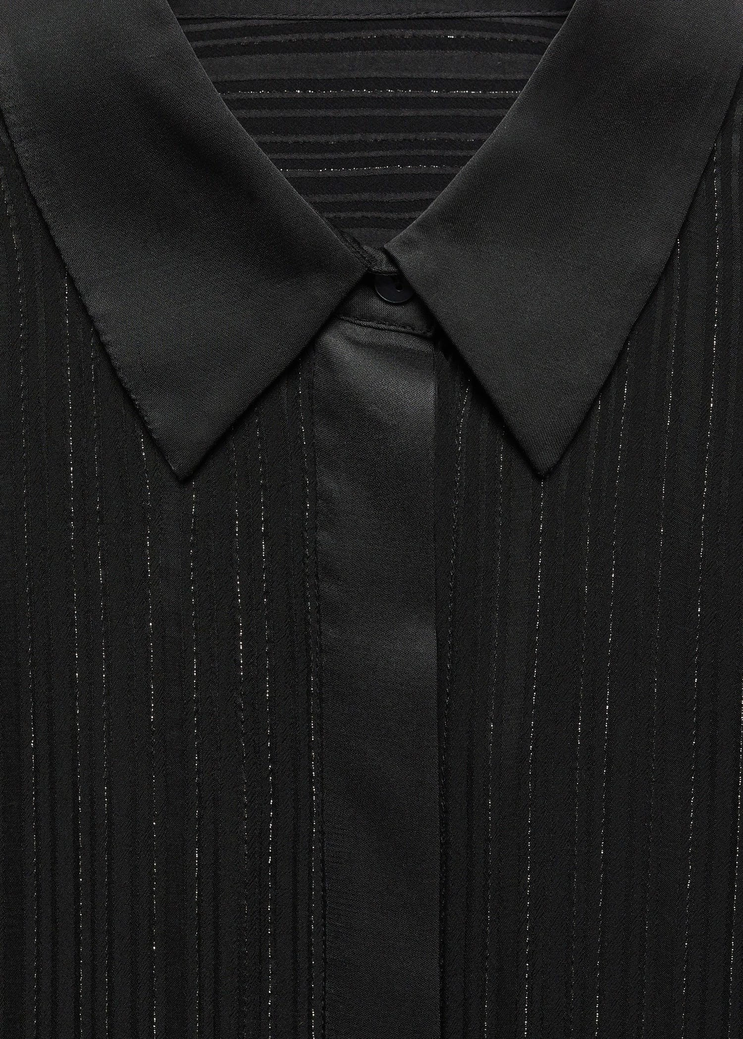 tissu fluide, coupe longue, coupe droite, col chemise, manches longues avec poignets boutonnes, fermeture a boutons dissimulee sur le devant, detail de fil metallise, bords satines, disponible plus, collection fetes et ceremonies.Composition: 99% viscose,1% polyester avec revêtement de cuivre. Applique: 100% viscose