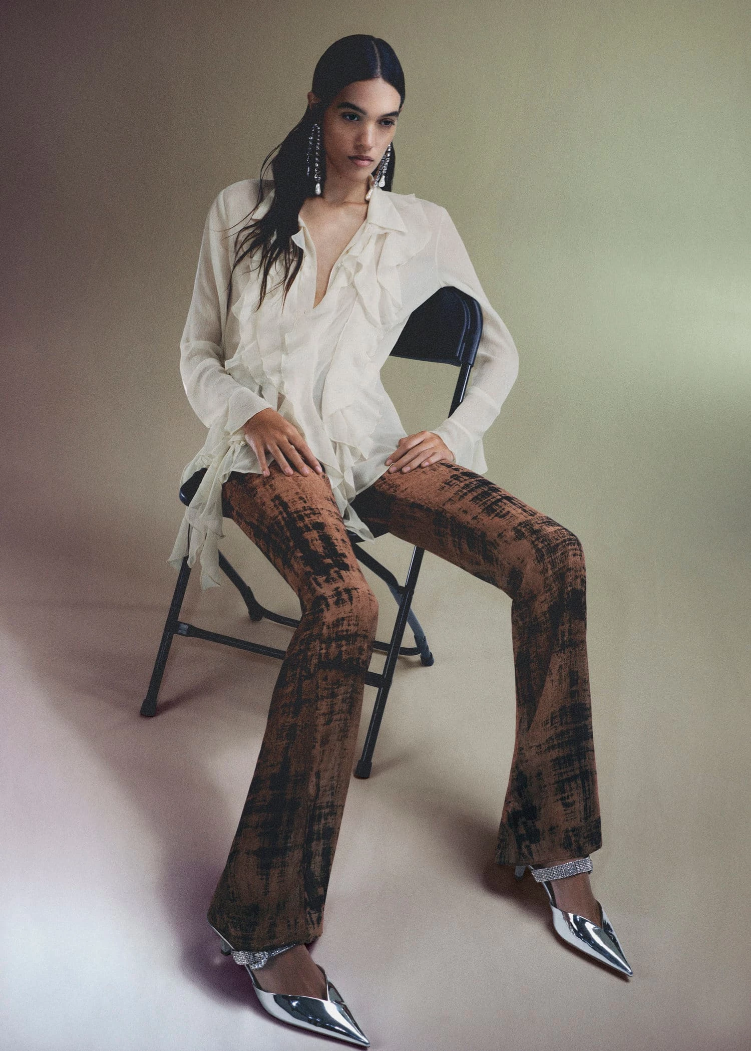 tissu fluide, tissu en gaze, droit, motif volants, col chemise, manches longues, fermeture boutonnee sur le devantComposition: 100% polyester