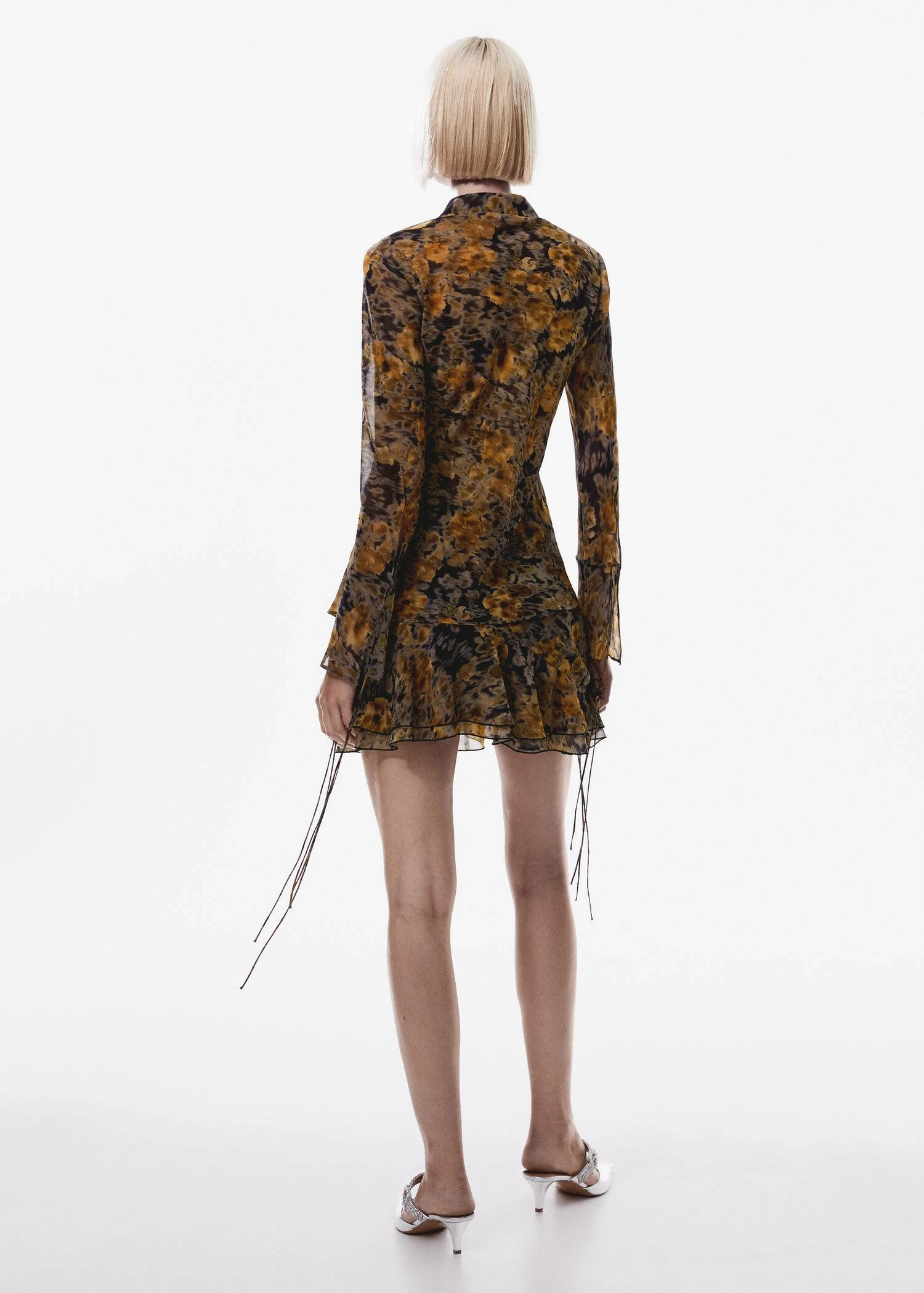tissu fluide, imprime floral, coupe droite, col chemise, manches longues, fermeture a nœud aux manches, fermeture boutonnee sur le devantComposition: 100% polyester. Lisiere: 100% polyester