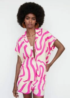 tissu en lin melange, imprime, droit, col chemise, manches courtes retournees, fermeture boutonnee sur le devant, total lookComposition: 55% lin,45% viscose