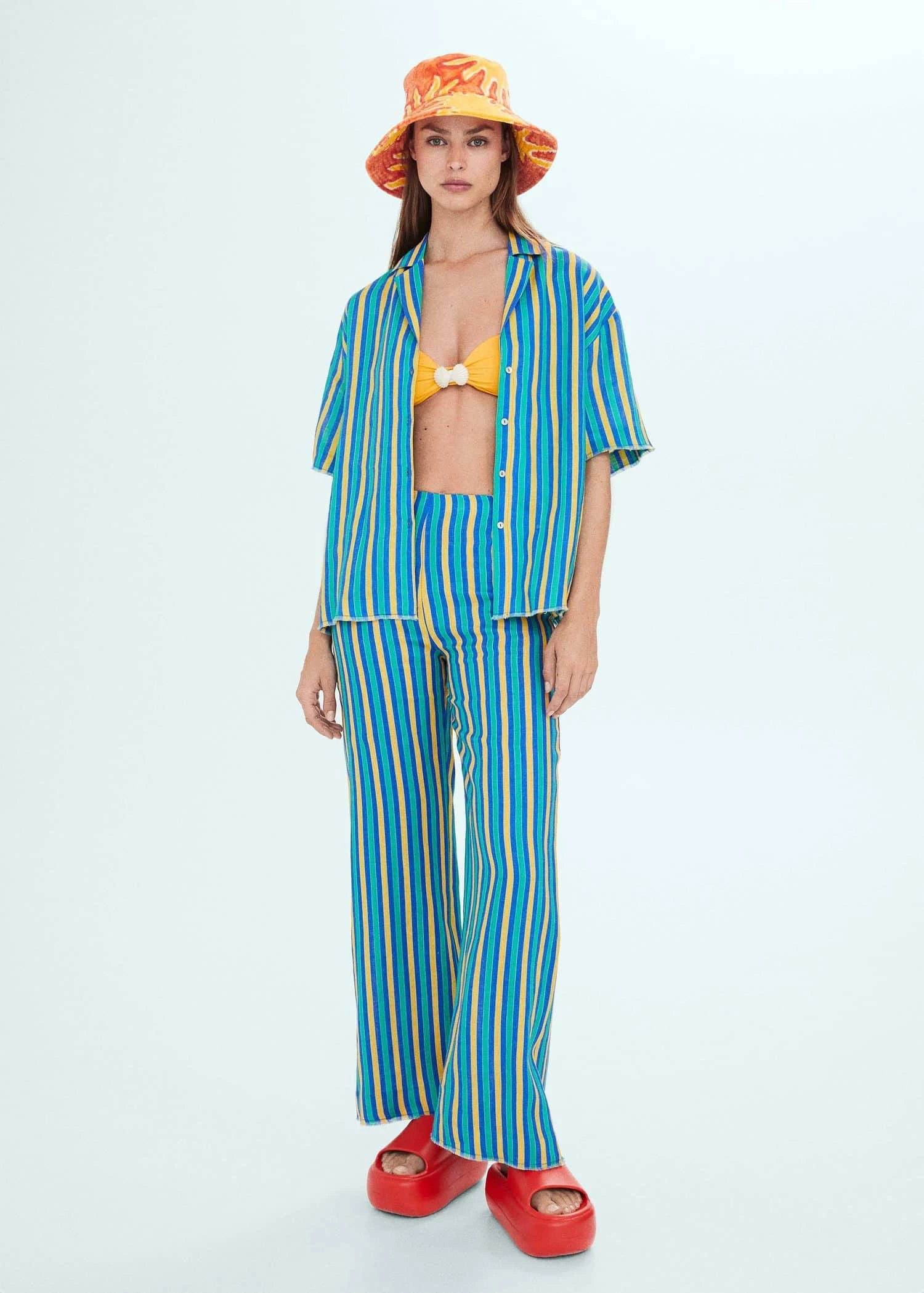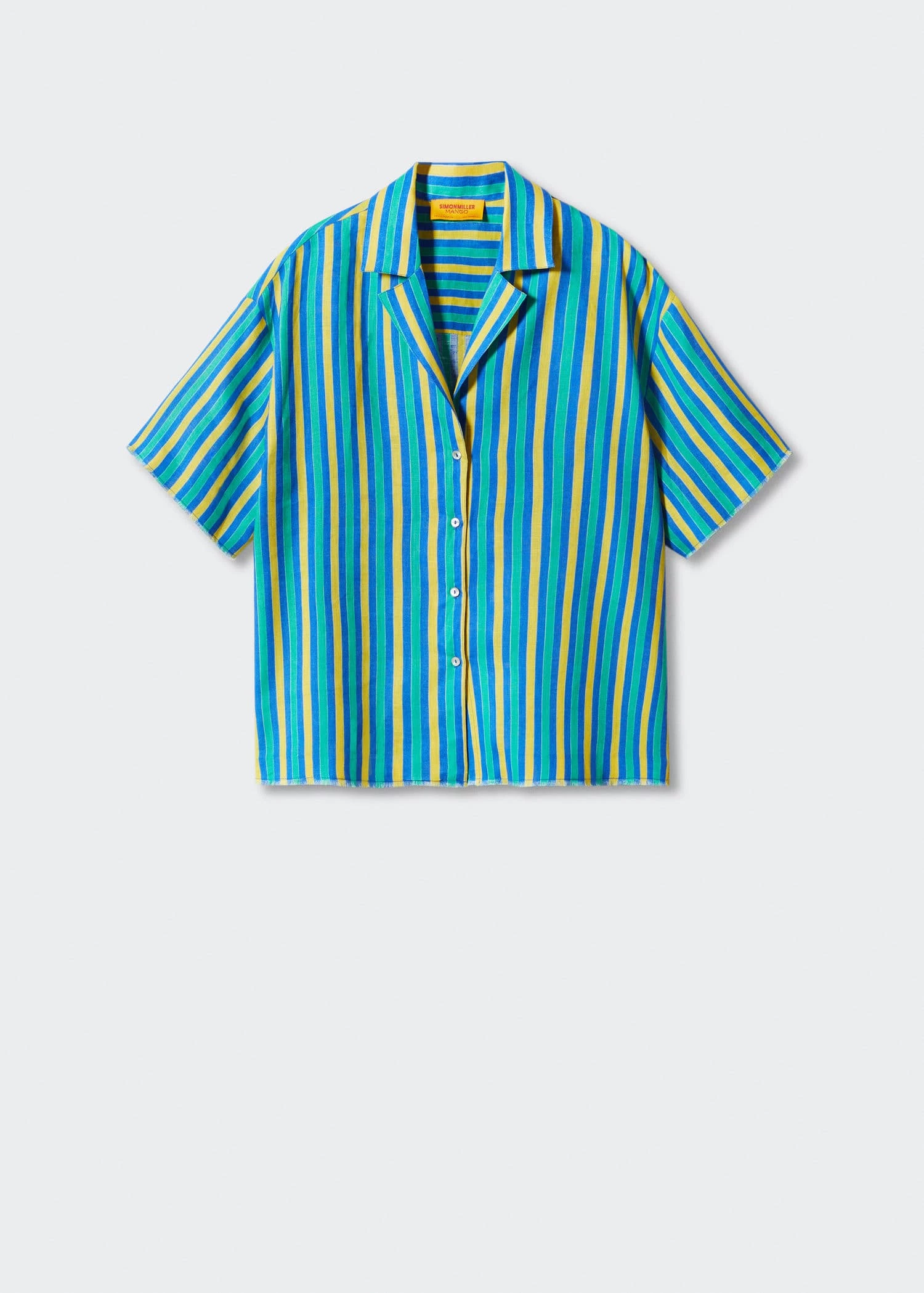 tissu 100 % lin, coupe droite, motif raye, multicolore, col chemise, manches courtes, fermeture boutonnee sur le devant, saison des festivals, simonmiller mango : nous nous sommes associes a la marque de los angeles pour vous proposer une collection d’ete rafraichissante qui mele le meilleur des styles californien et mediterraneen. avec des tissus de qualite et des imprimes vibrants, les vetements de cette collaboration speciale debarquent dans votre dressing pour devenir vos favoris de l’ete.Composition: 100% lin