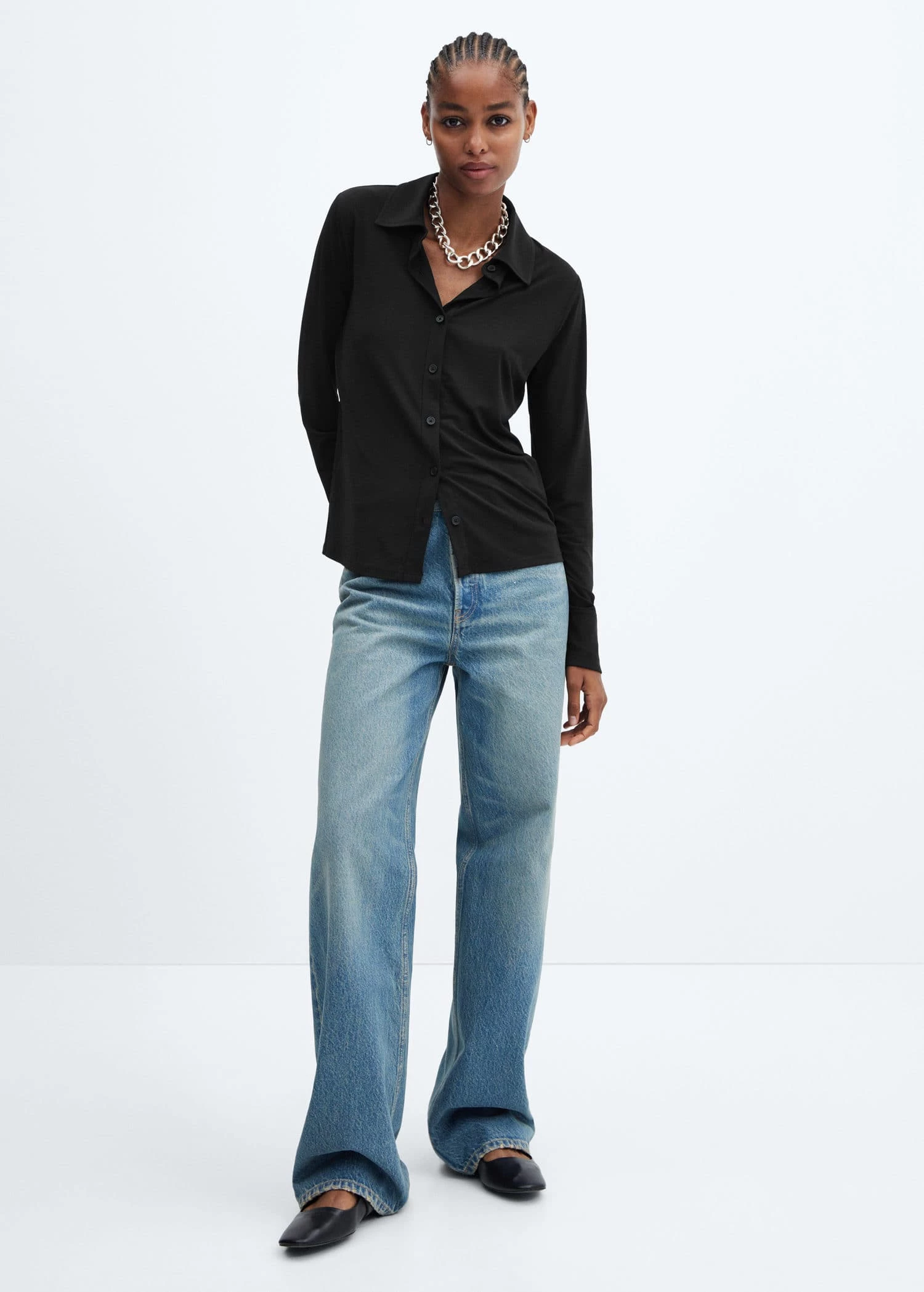 tissu en maille fine, tissu fluide, droit, col chemise, manches longues avec poignets boutonnes, fermeture a boutons sur le devantComposition: 94% polyester,6% elasthanne