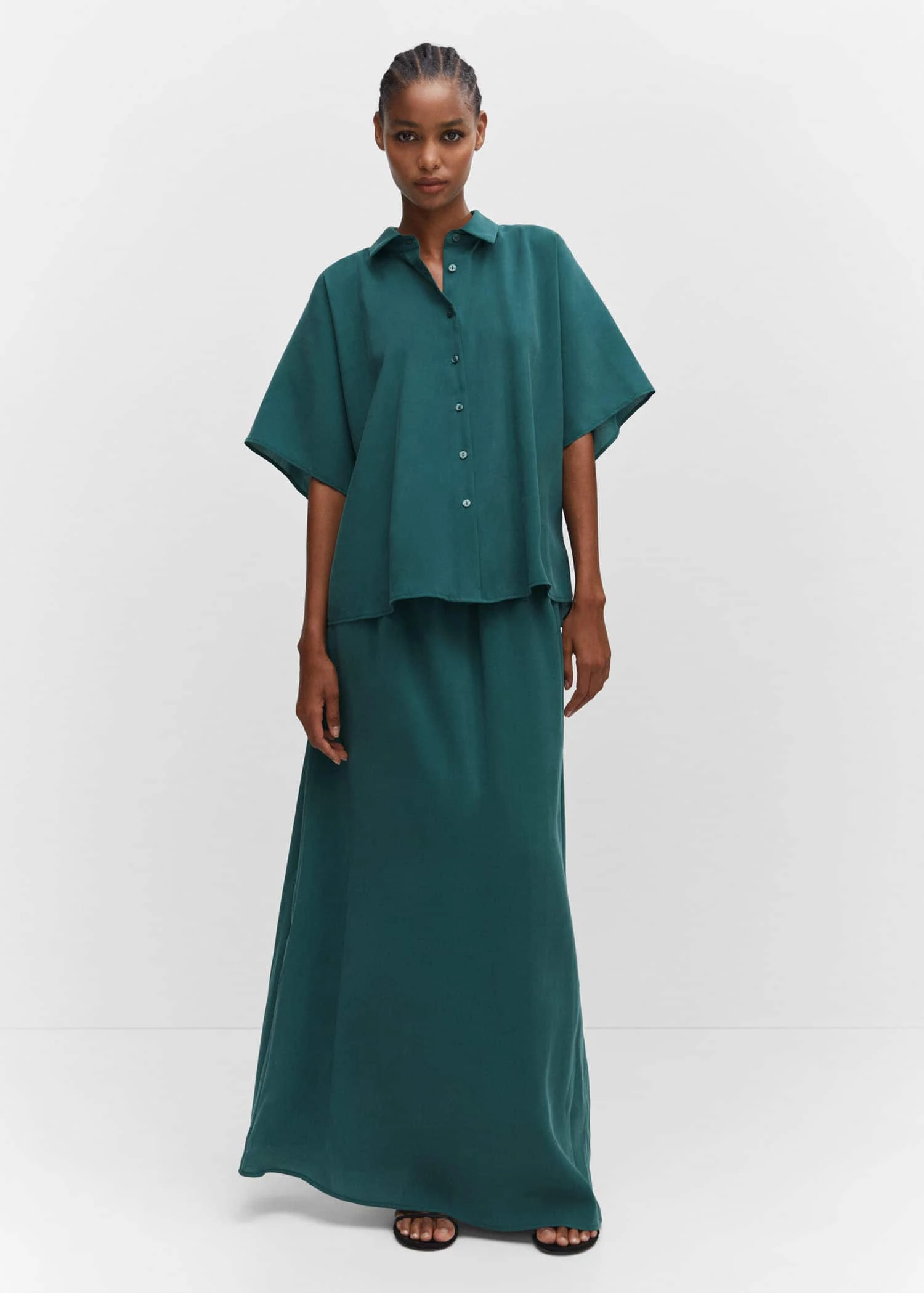 tissu en modal melange, tissu fluide, style oversize, col chemise, manches courtes, fermeture boutonnee sur le devant, total lookComposition: 86% modal,14% polyester
