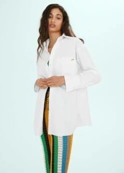 tissu de coton melange, style oversize, coupe longue, col chemise, manches longues avec poignets boutonnes, poche plaquee sur le devant, fermeture boutonnee sur le devant, detail brode, simonmiller mango : nous nous sommes associes a la marque de los angeles pour vous proposer une collection d’ete rafraichissante qui mele le meilleur des styles californien et mediterraneen. avec des tissus de qualite et des imprimes vibrants, les vetements de cette collaboration speciale debarquent dans votre dressing pour devenir vos favoris de l’ete.Composition: 82% coton,15% polyamide,3% elasthanne