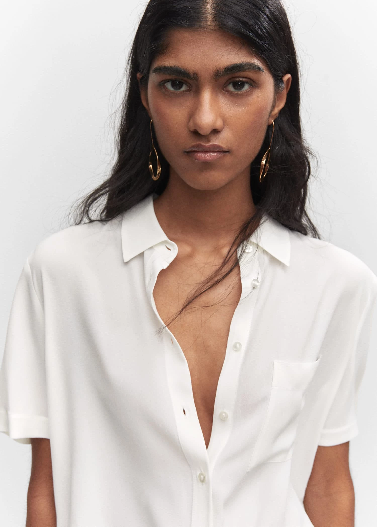 tissu fluide, style oversize, coupe longue, col chemise, manches courtes, poche plaquee sur le devant, fermeture boutonnee sur le devantComposition: 100% viscose