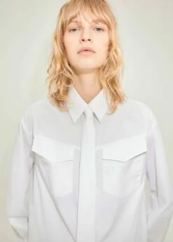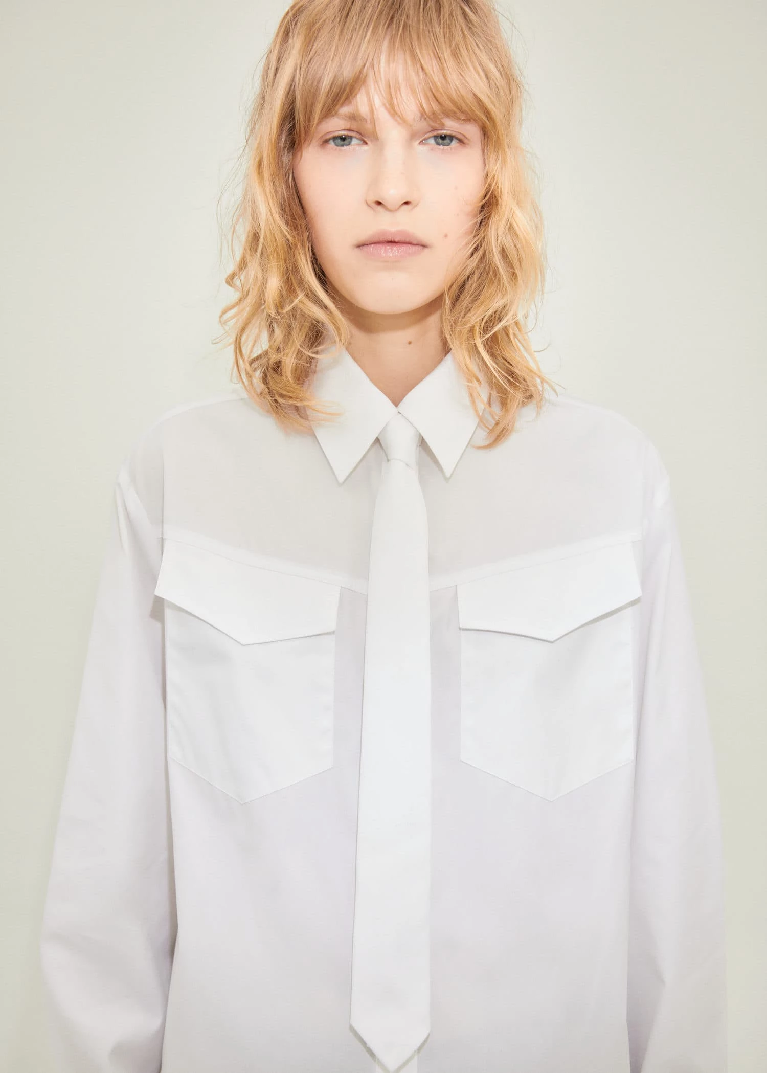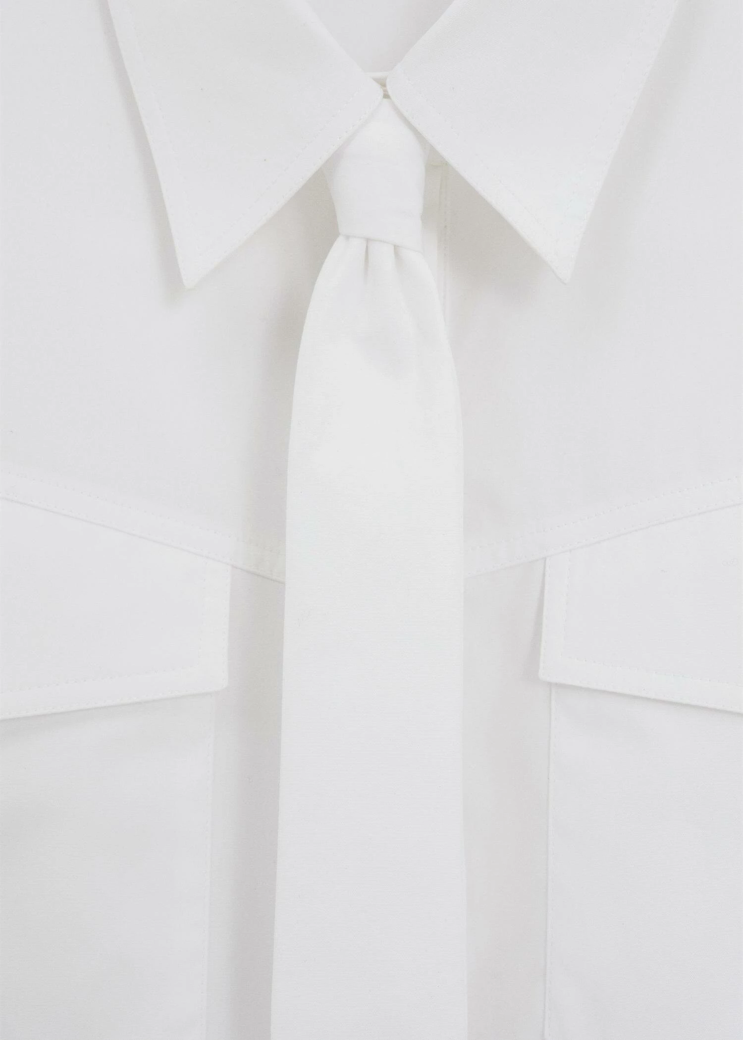 collection selection, 100 % coton, droit, col chemise, manches longues avec poignets boutonnes, deux poches a rabat sur la poitrine, fermeture a boutons dissimulee sur le devant, detail cravate, looks de bureau, une selection de pieces qui vous accompagneront lors du retour au bureau. confectionnee avec des matieres de qualite pour creer une garde-robe feminine et contemporaine pour votre quotidien.