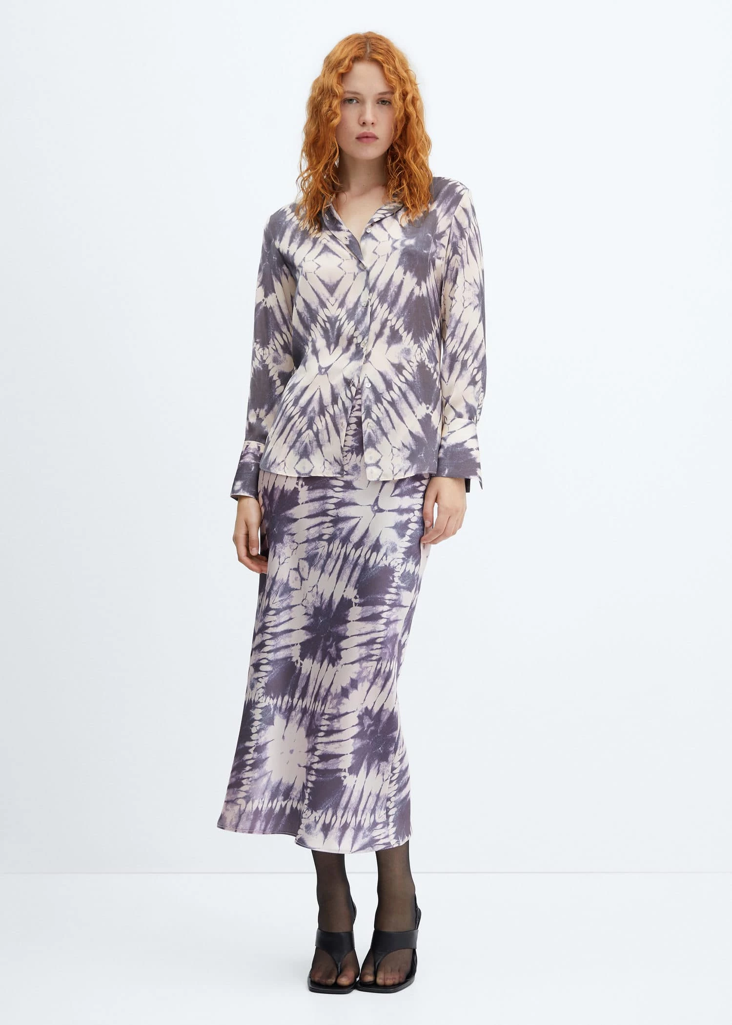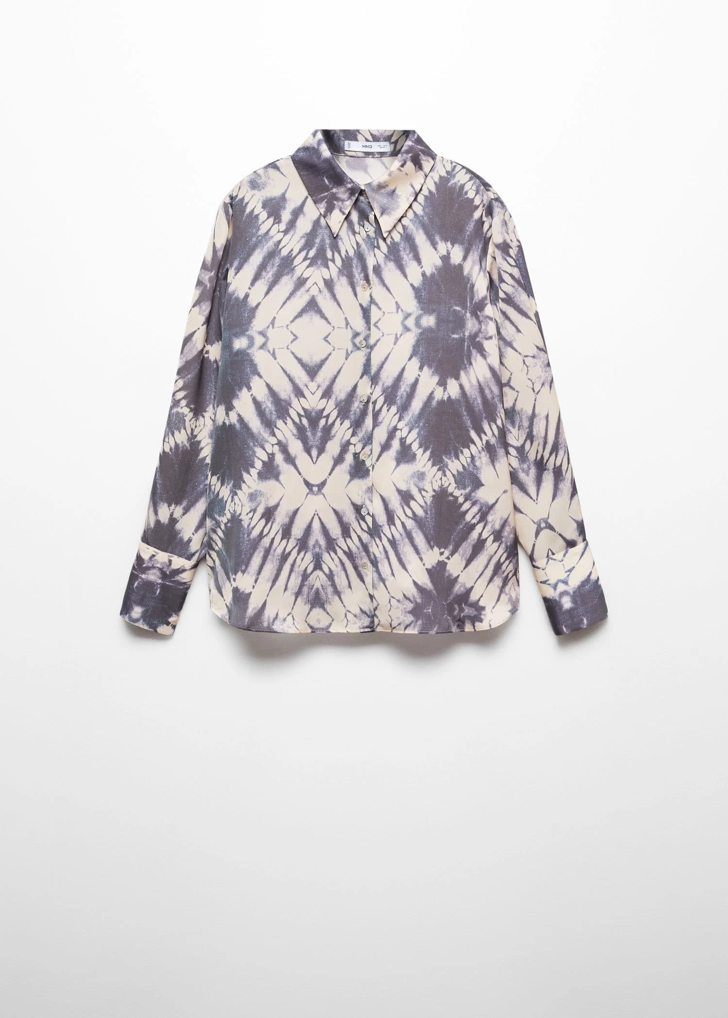 tissu satine, tissu fluide, imprime tie-dye, droit, col chemise, manches longues avec poignets boutonnes, fermeture boutonnee sur le devant, total lookComposition: 100% polyester