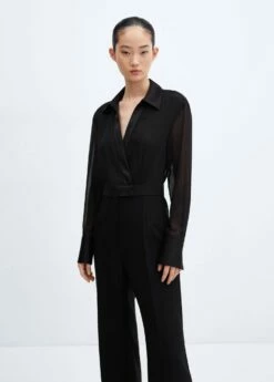 tissu fluide, coupe longue, droit, col chemise, manches longues avec poignets boutonnes, fermeture frontale, liseres satines, doublureComposition: 100% polyester. Doublure: 100% polyester. Emmanchure: 100% polyester. Pantalon: 100% polyester