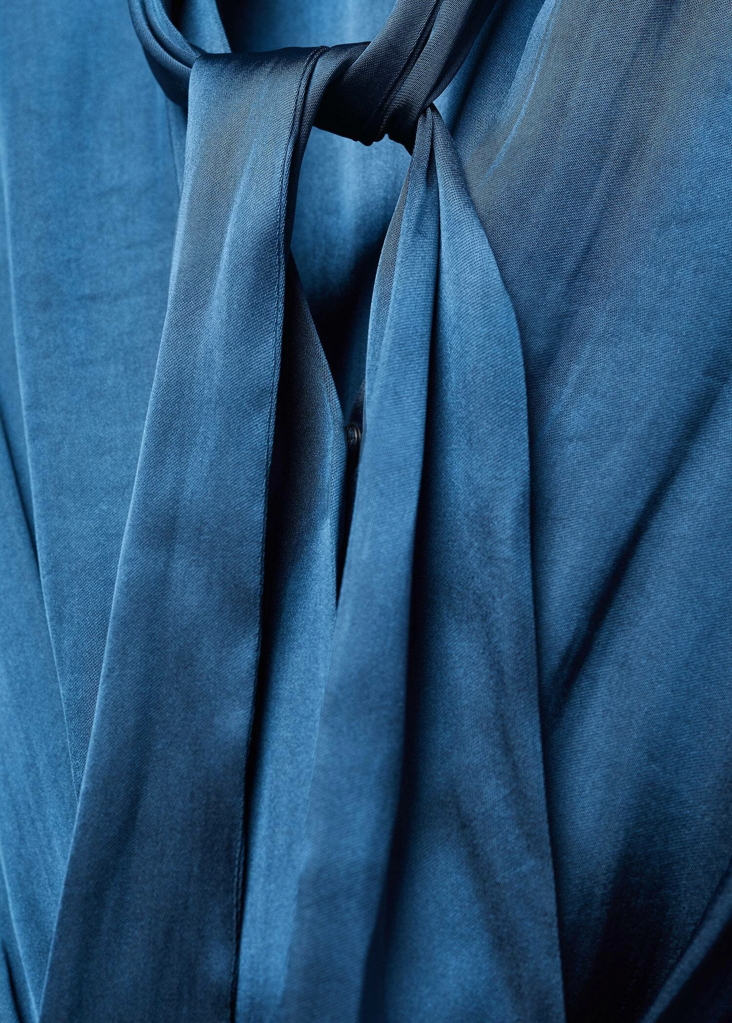 tissu fluide, coupe longue, coupe wideleg, effet satine, col en v, lien a nouer autour du cou, manches longues avec poignets elastiques, taille elastiquee, sans fermetureComposition: 100% polyester