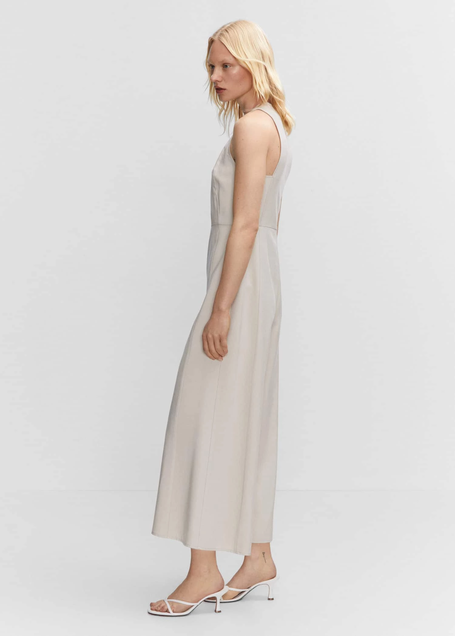 tissu fluide, coupe cintree, coupe longue, style crop, col rond, bretelles larges, fermeture eclair a l’arriere, coutures decorativesComposition: 93% viscose,7% polyester