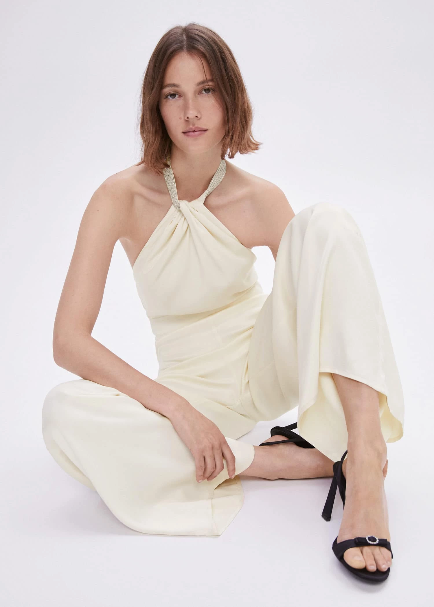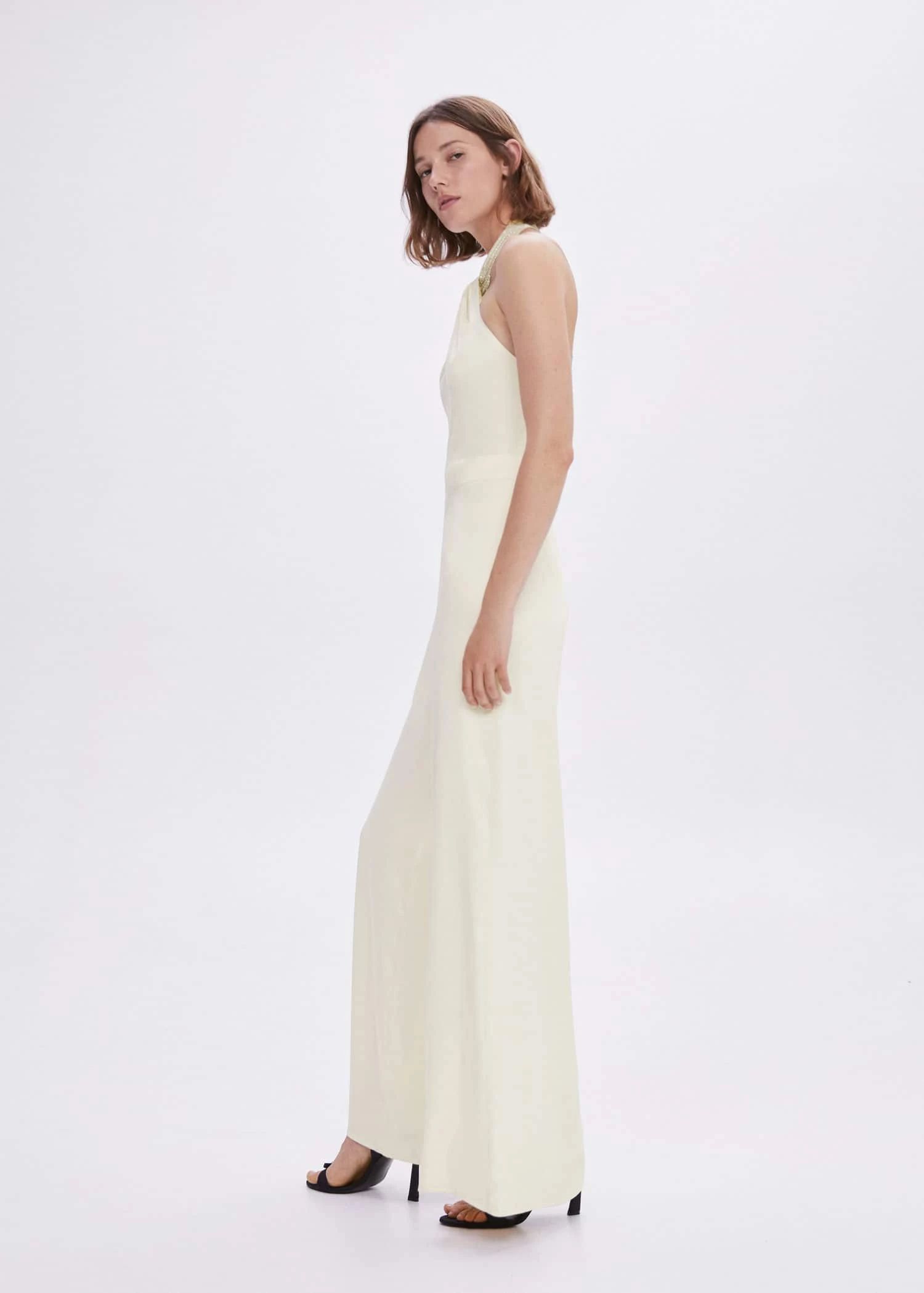 tissu fluide, coupe cintree, coupe longue, emmanchures americaines, detail metallise, sans manches, encolure au dos, fermoir a chainette et mousqueton, collection fetes et ceremonies, une selection de pieces raffinees, fabriquees a partir de materiaux de qualite pour creer une garde-robe feminine et contemporaine pour les grandes occasionsComposition: 99% viscose,1% elasthanne. Doublure: 100% polyester