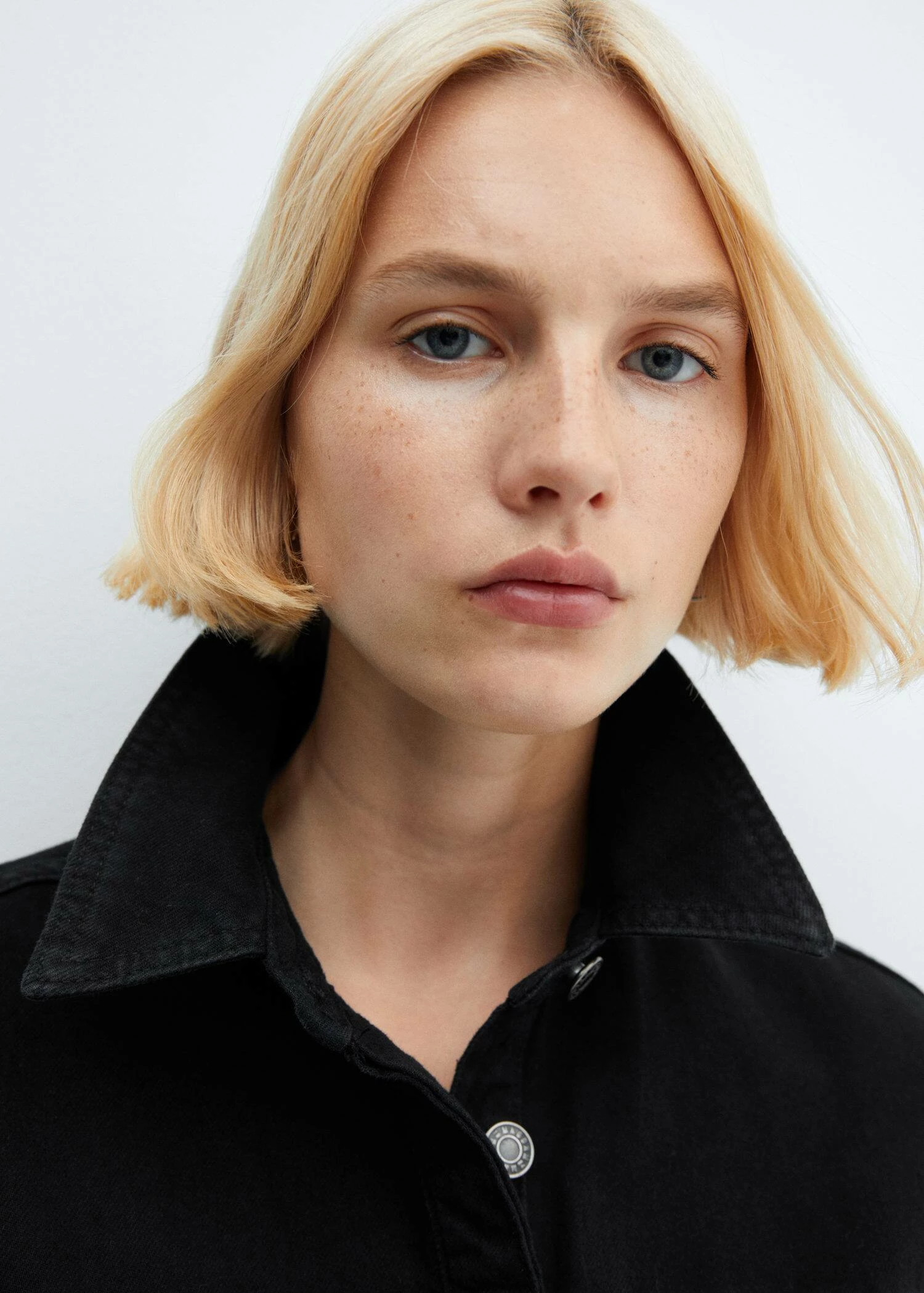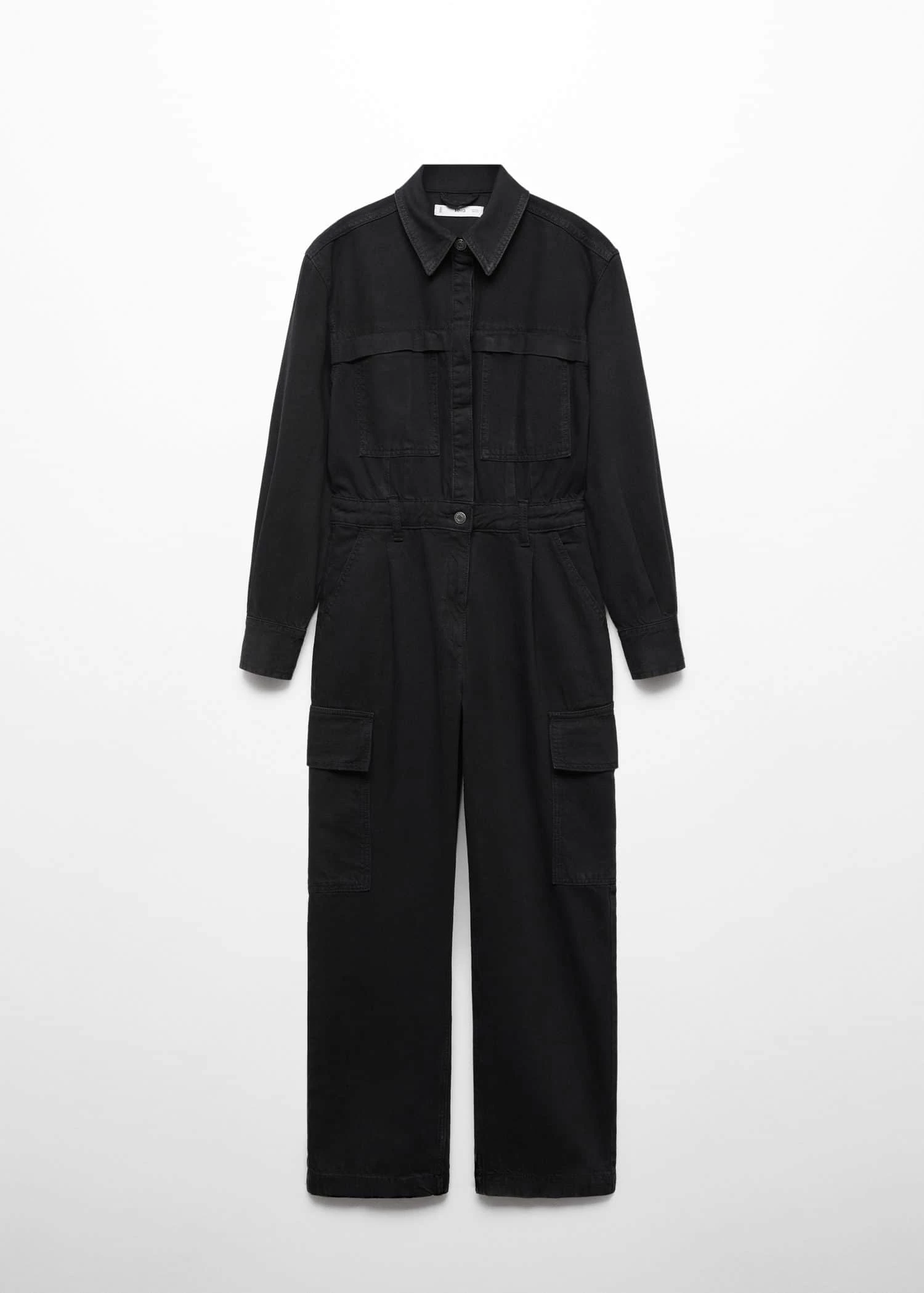tissu en coton de style jean, droit, coupe longue, col chemise, manches longues boutonnees, poche plaquee sur le devant, poches laterales, deux poches cargo, passants pour la ceinture, fermeture boutonnee sur le devant, fermeture eclairComposition: 100% coton