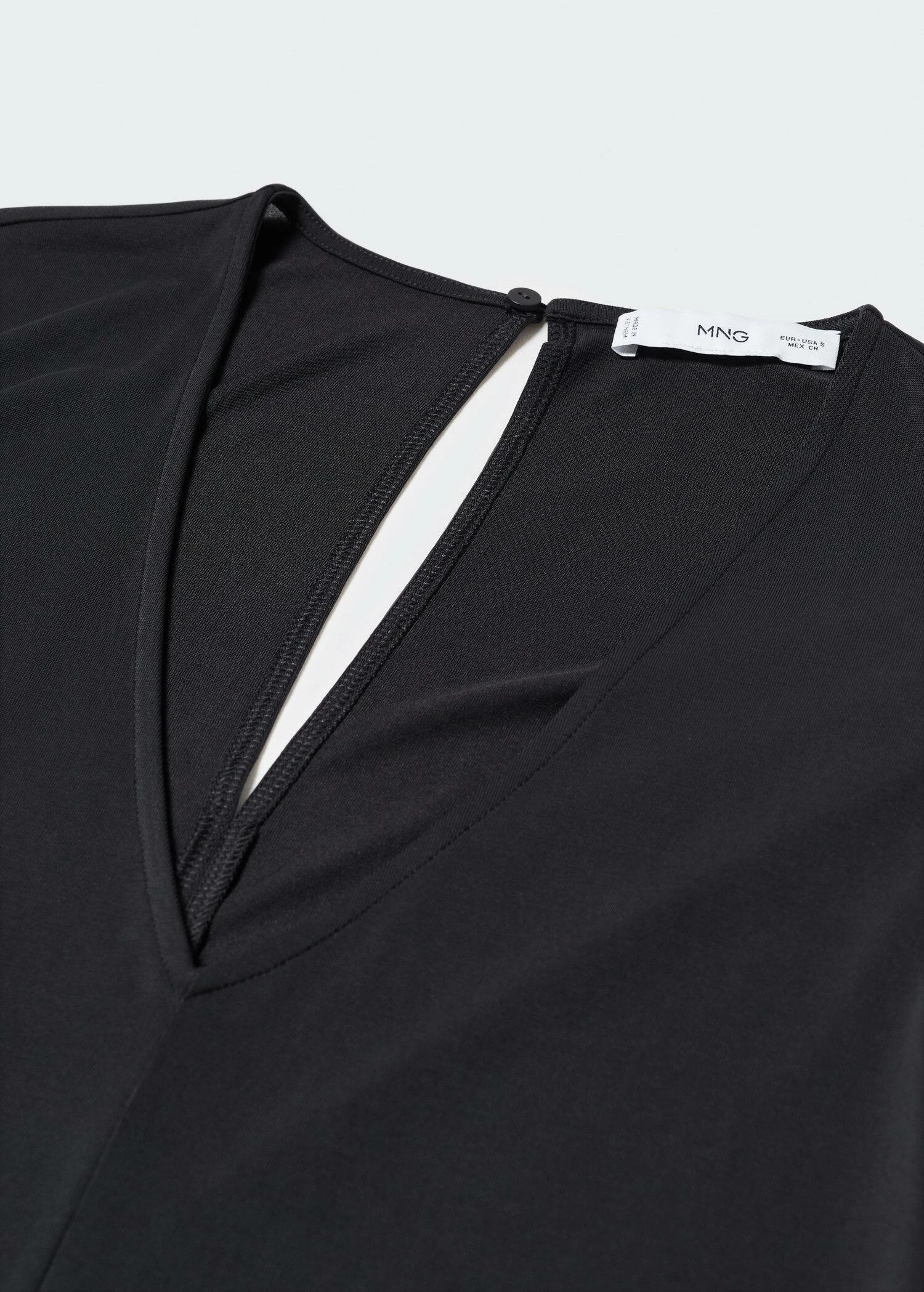 tissu en modal melange, tissu fluide, coupe droite, coupe courte, col en v, sans manches, col boutonne, nœud amovible a la tailleComposition: 66% modal,34% polyester