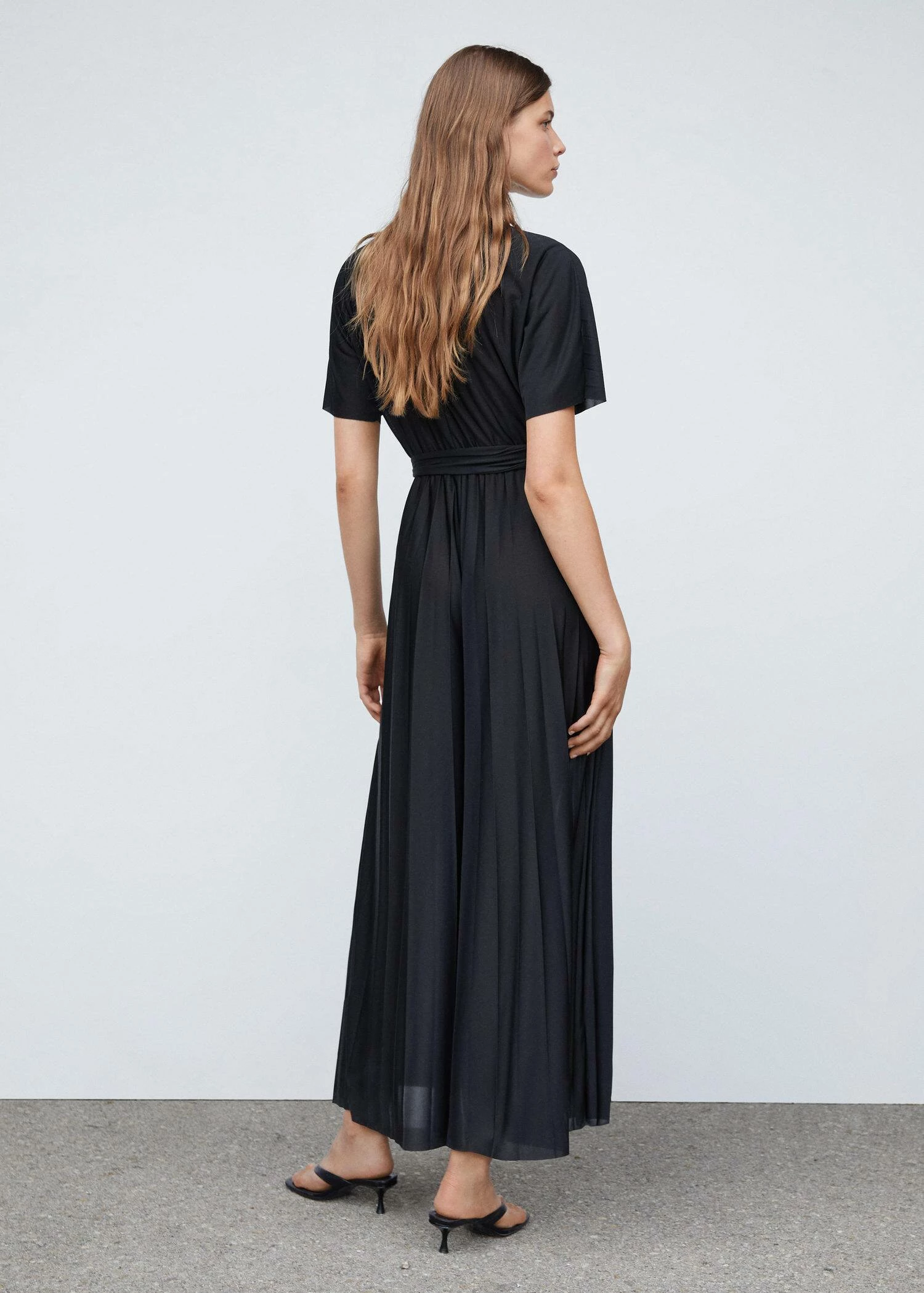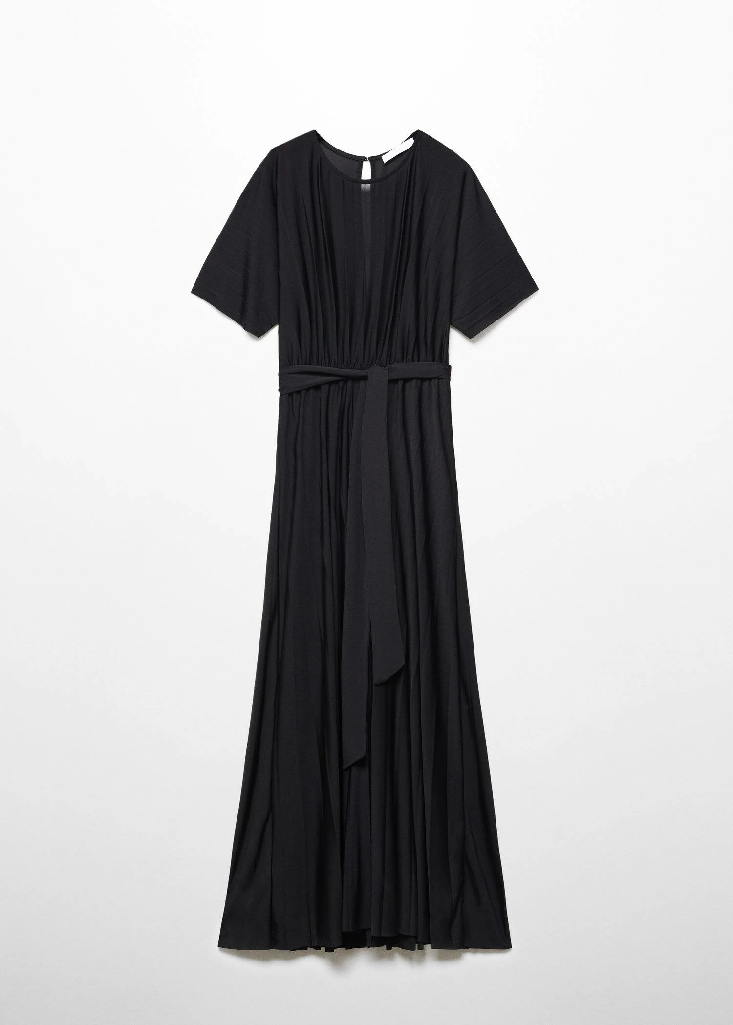design plisse, coupe longue, col rond, manches courtes, ouverture dans le dos avec bouton, nœud a la taille, collection fetes et ceremoniesComposition: 60% polyester,40% polyester recyclé
