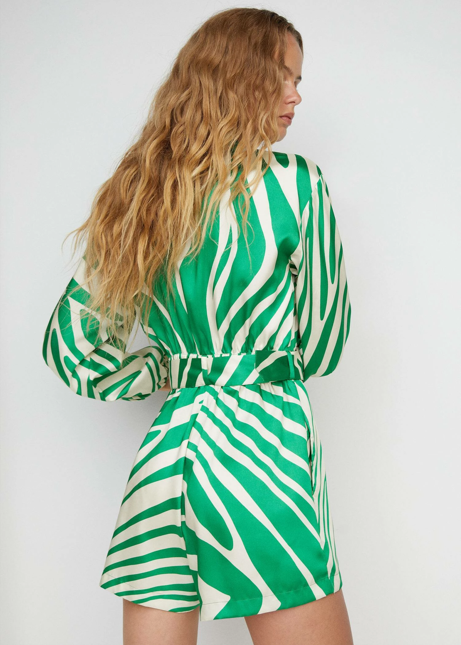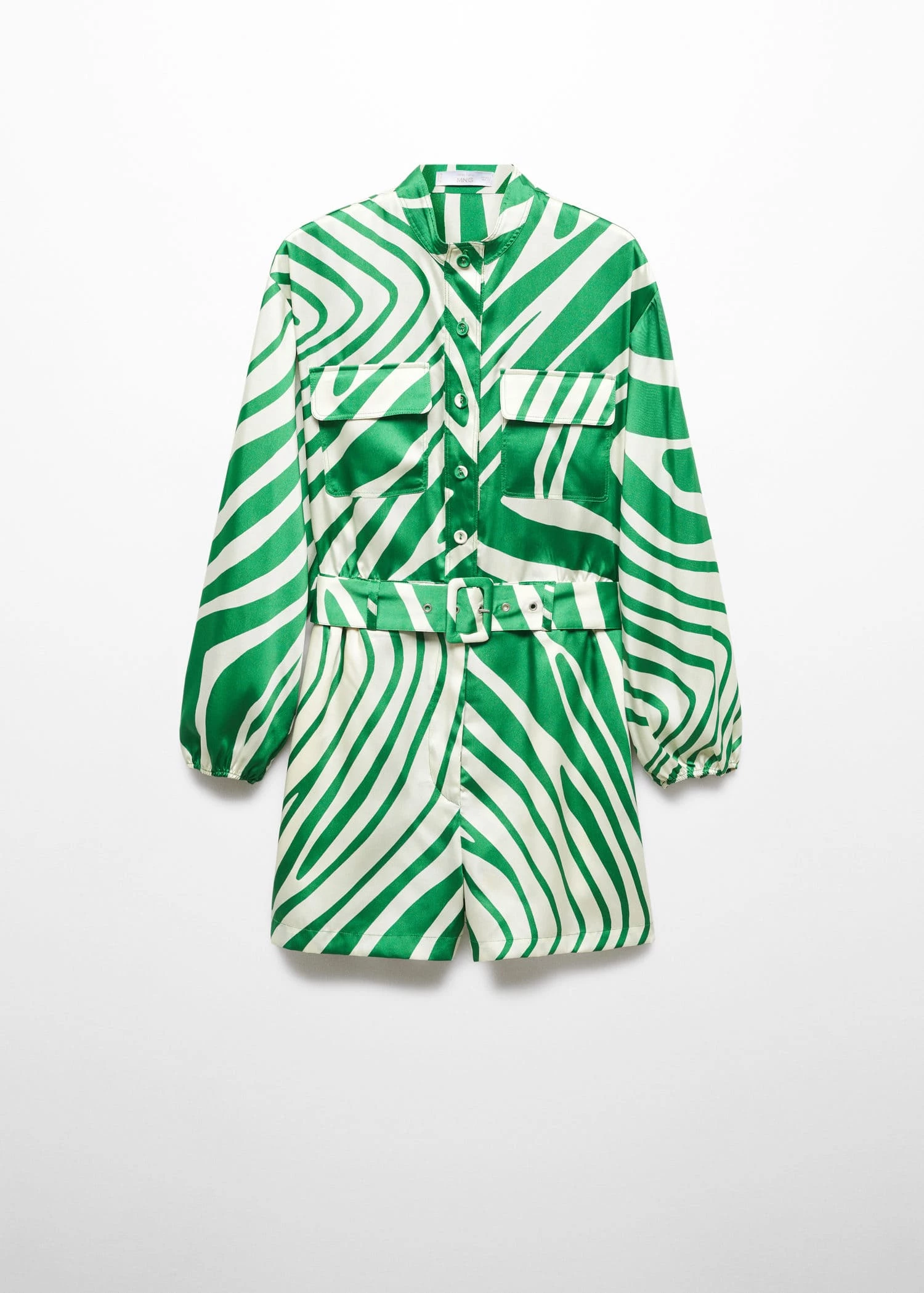 tissu satine, tissu fluide, droit, coupe courte, imprime, col officier, manches longues bouffantes, poignets elastiques, deux poches plaquees sur la poitrine, ceinture amovible, fermeture boutonnee sur le devant, doublureComposition: 100% polyester. Doublure: 100% polyester