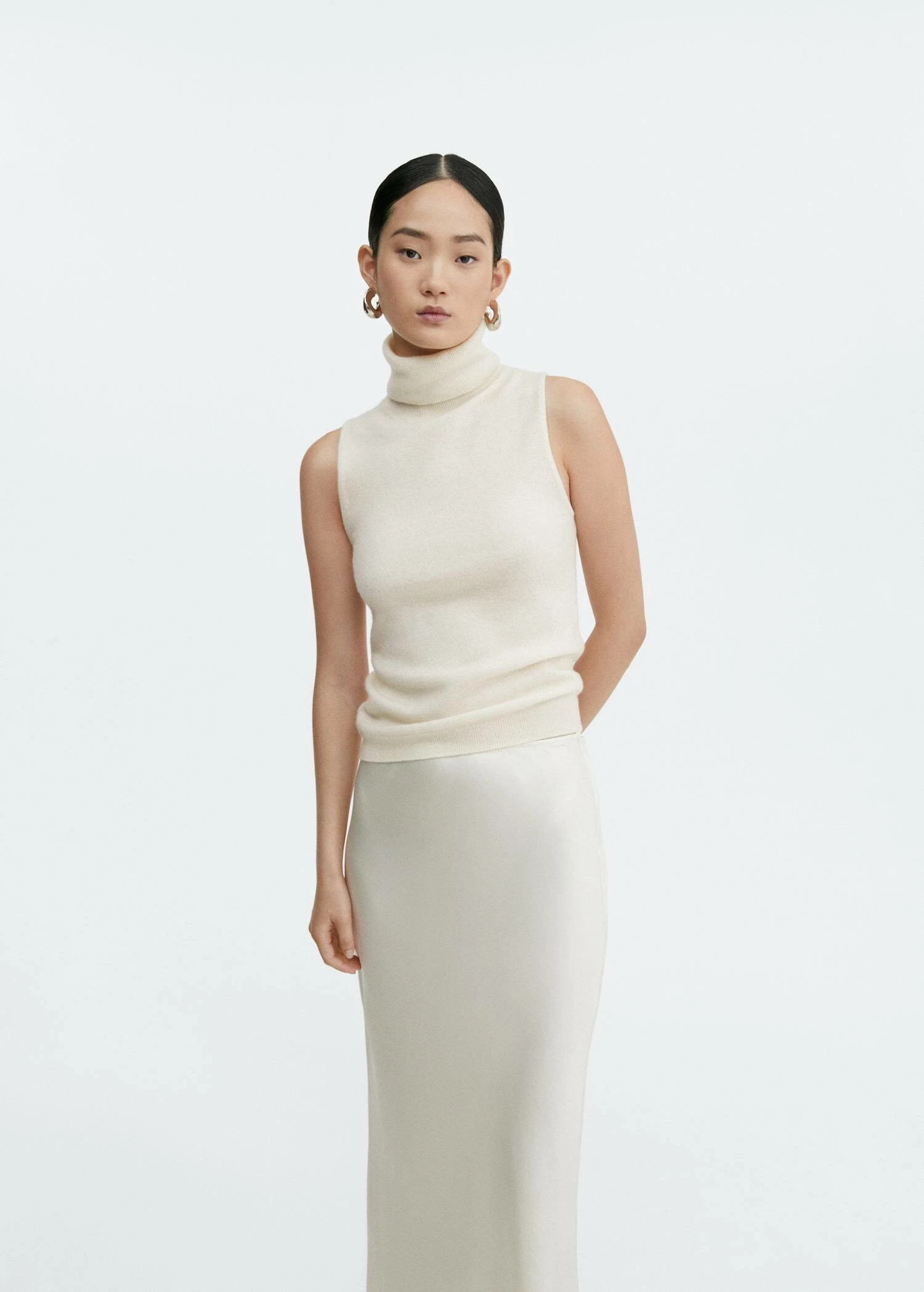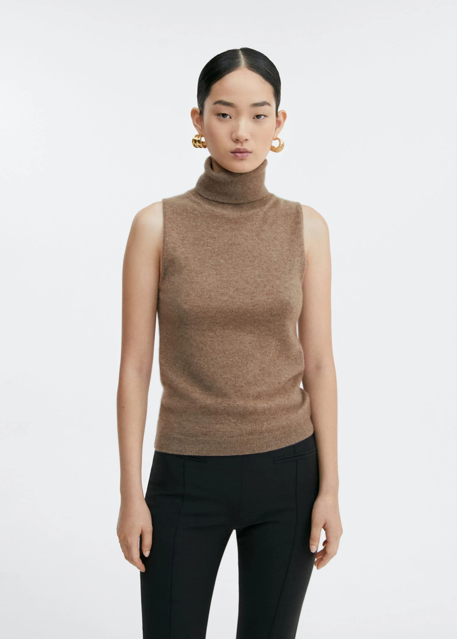collection selection, 100 % cachemire, tissu en maille fine, droit, col roule, sans manches, bords coteles, total look, une selection de pieces qui vous accompagneront lors du retour au bureau. confectionnee avec des matieres de qualite pour creer une garde-robe feminine et contemporaine pour votre quotidien.