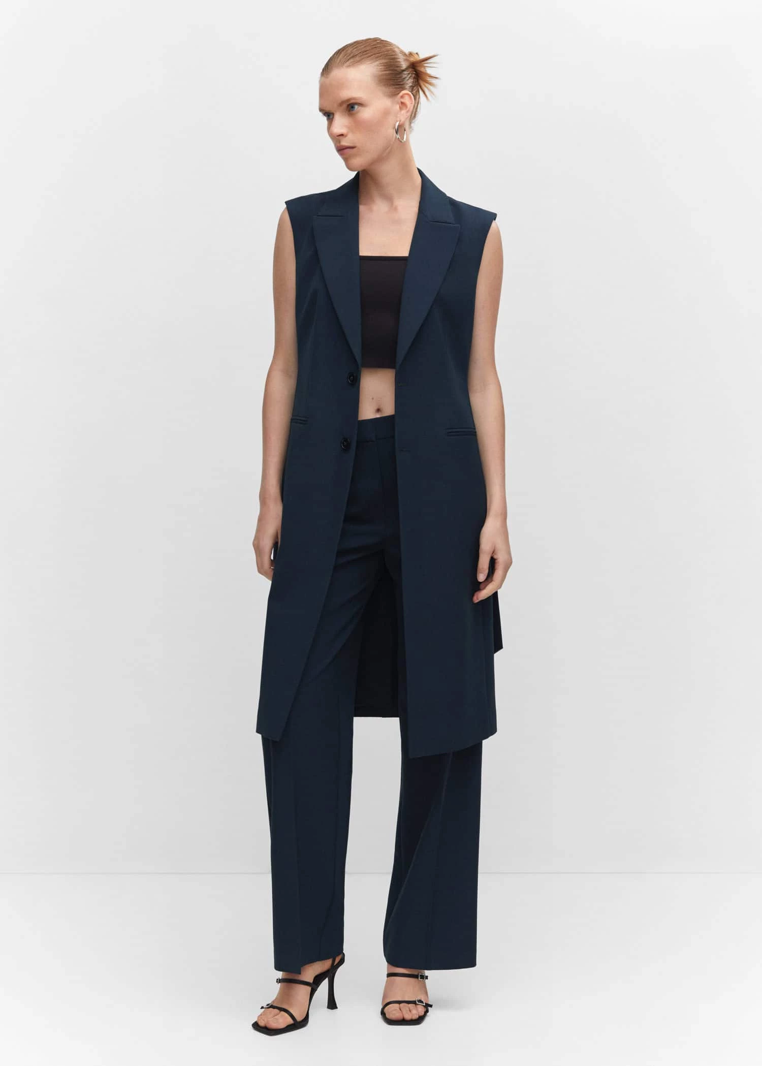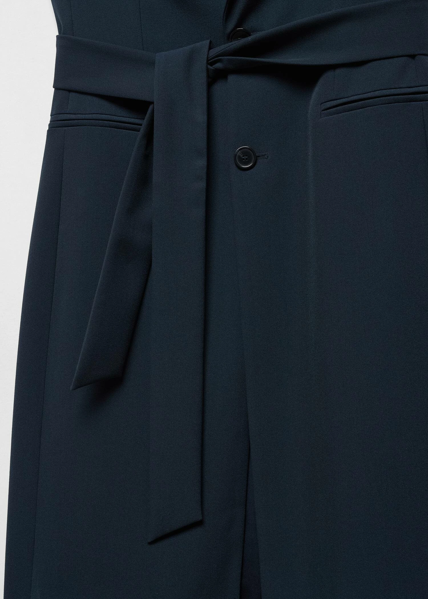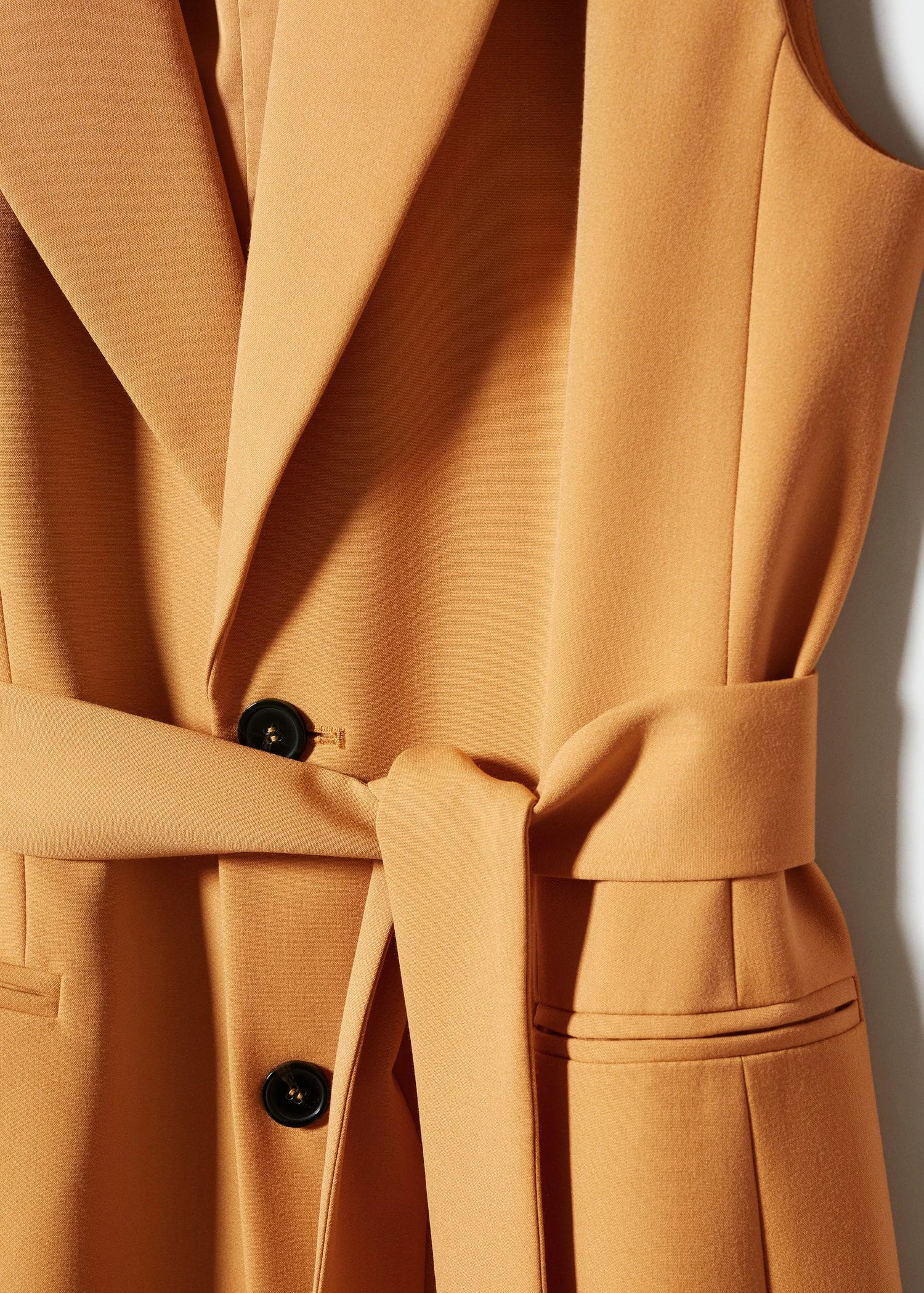 tissu fluide, droit, coupe longue, col en v avec rabat, sans manches, deux poches passepoilees a l’avant, fermeture boutonnee sur le devant, nœud a la taille, doublure, total lookComposition: 80% polyester,16% viscose,4% elasthanne. Doublure: 100% polyester. Ceinture: 80% polyester,16% viscose,4% elasthanne