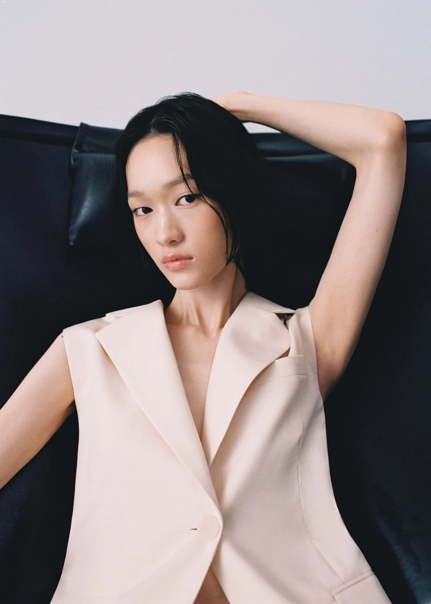 tissu de coton melange, droit, coupe longue, col en v avec rabat, sans manches, deux poches a rabat a l’avant, fermeture a bouton sur le devant, doublureComposition: 82% coton,15% polyamide,3% elasthanne. Doublure: 100% coton