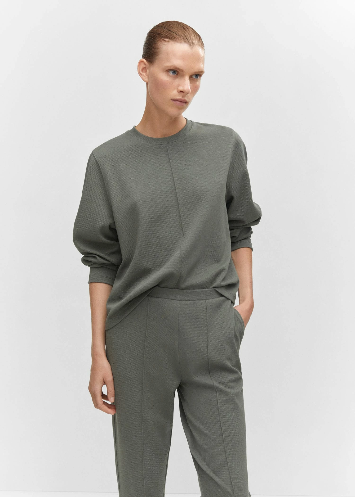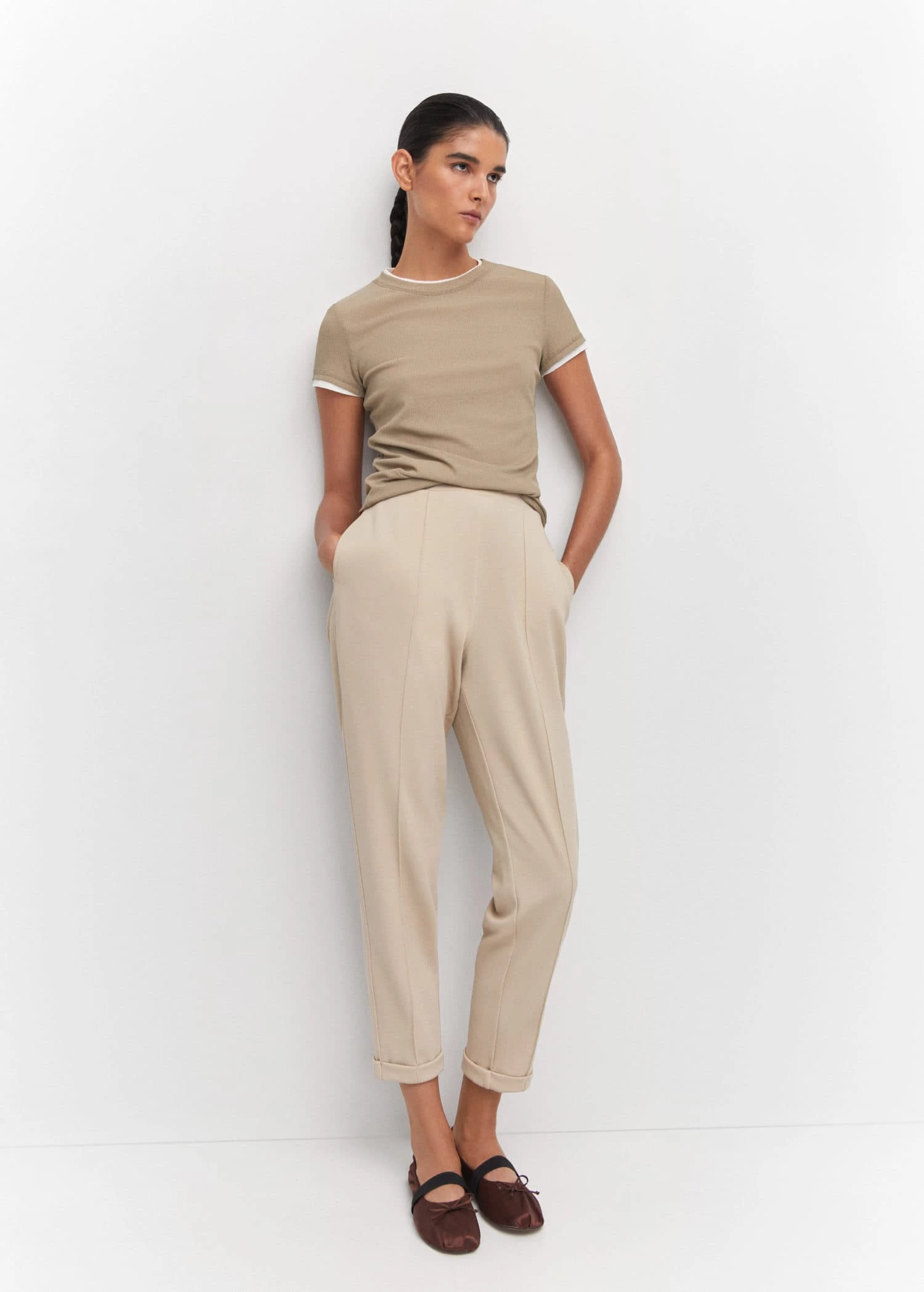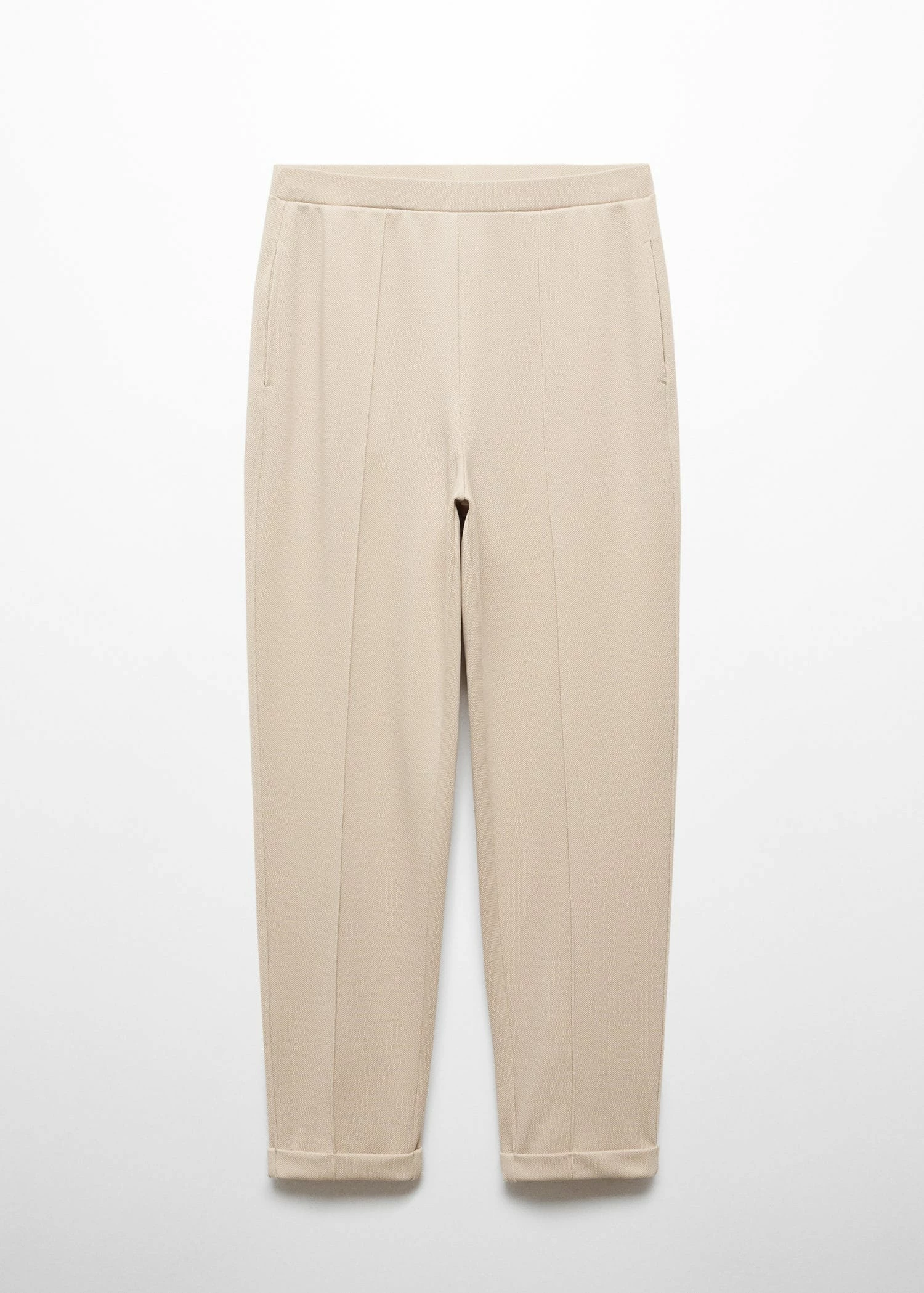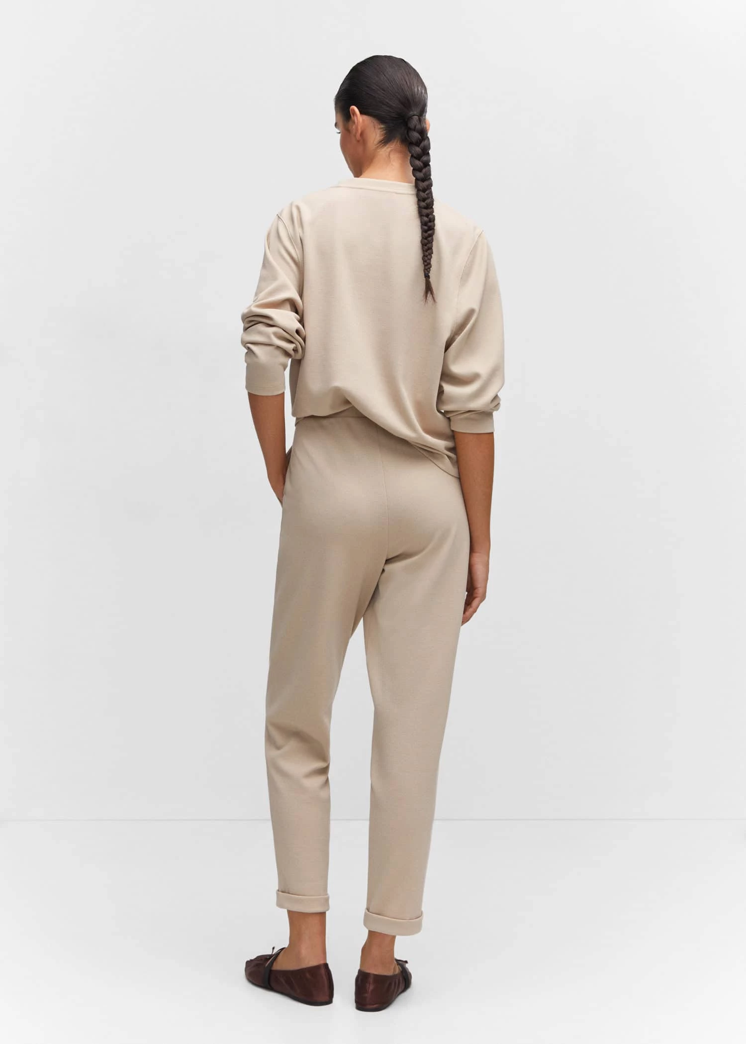 tissu fluide, coupe jogging, taille haute, taille elastiquee, sans fermeture, poches laterales, coutures decoratives, revers, total lookComposition: 78% polyester,20% viscose,2% elasthanne