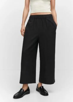 tissu en lin melange, coupe jupe-culotte, style crop, deux poches laterales, taille elastiquee, sans fermetureComposition: 55% lin,45% viscose. Doublure: 85% polyester,15% coton