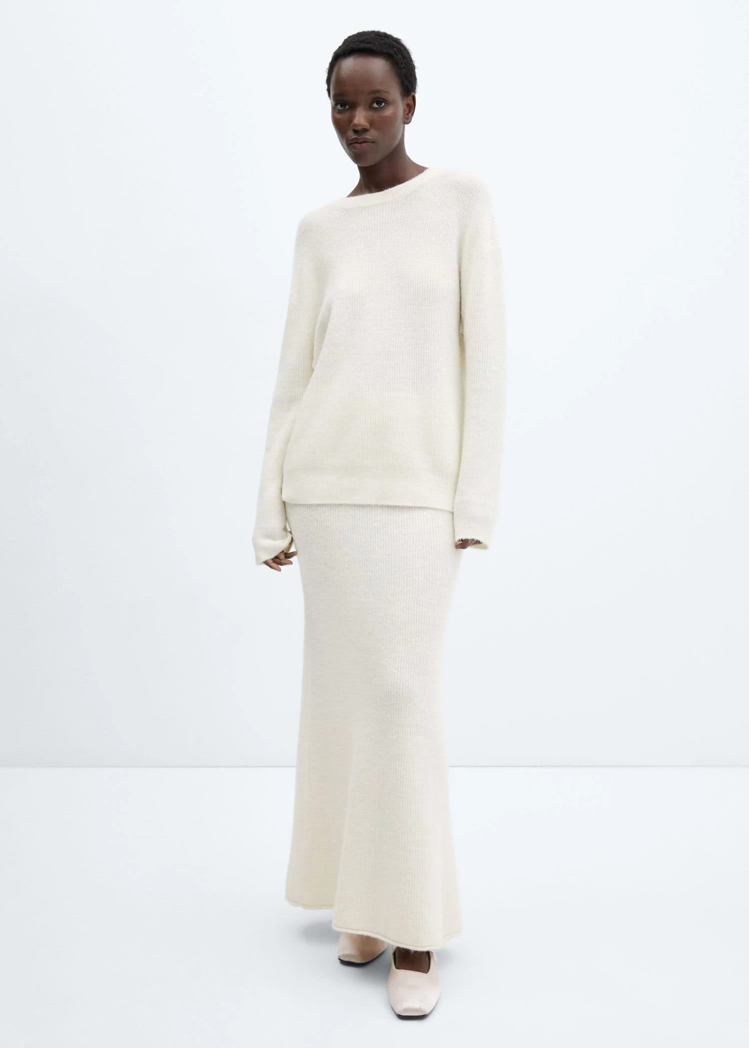 melange laine et alpaga, maille moyenne, evase, coupe midi, taille elastique, sans fermeture, total lookComposition: 43% polyester,37% polyamide,9% laine,7% alpaca,4% elasthanne