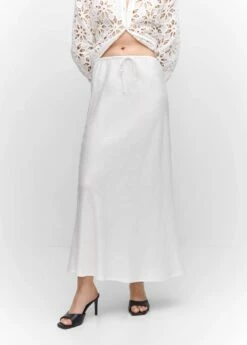 coupe midi, tissu en lin melange, elastique pour cheveux, evase, coupe longue, taille haute, taille elastiquee, fermeture a nouerComposition: 70% viscose,30% lin