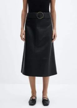 tissu fluide, coupe midi, evase, taille haute, fermeture laterale, ceinture ajustable, similicuir, sans doublure interieureComposition: 100% polyester. Revêtement: 100% polyurethane