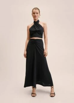 tissu fluide, coupe maxi, taille normale, effet satine, sans fermeture, taille elastiquee, fente laterale, disponible plusComposition: 52% polyester,48% viscose