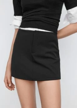 coupe jupe pantalon, coupe droite, coupe courte, taille haute, fermeture eclair avec crochet et bouton dissimulesComposition: 56% polyester,40% polyester recyclé,4% elasthanne