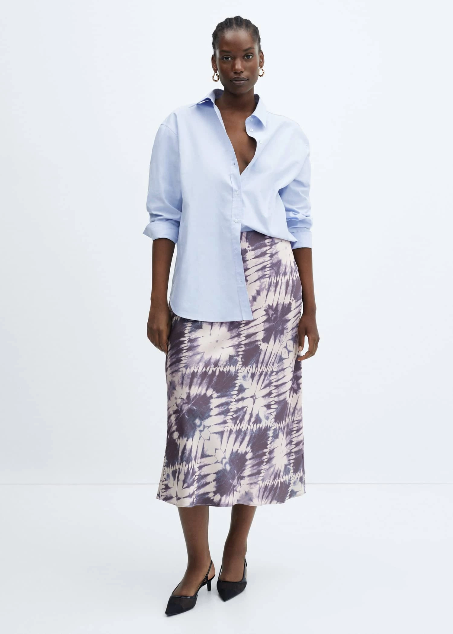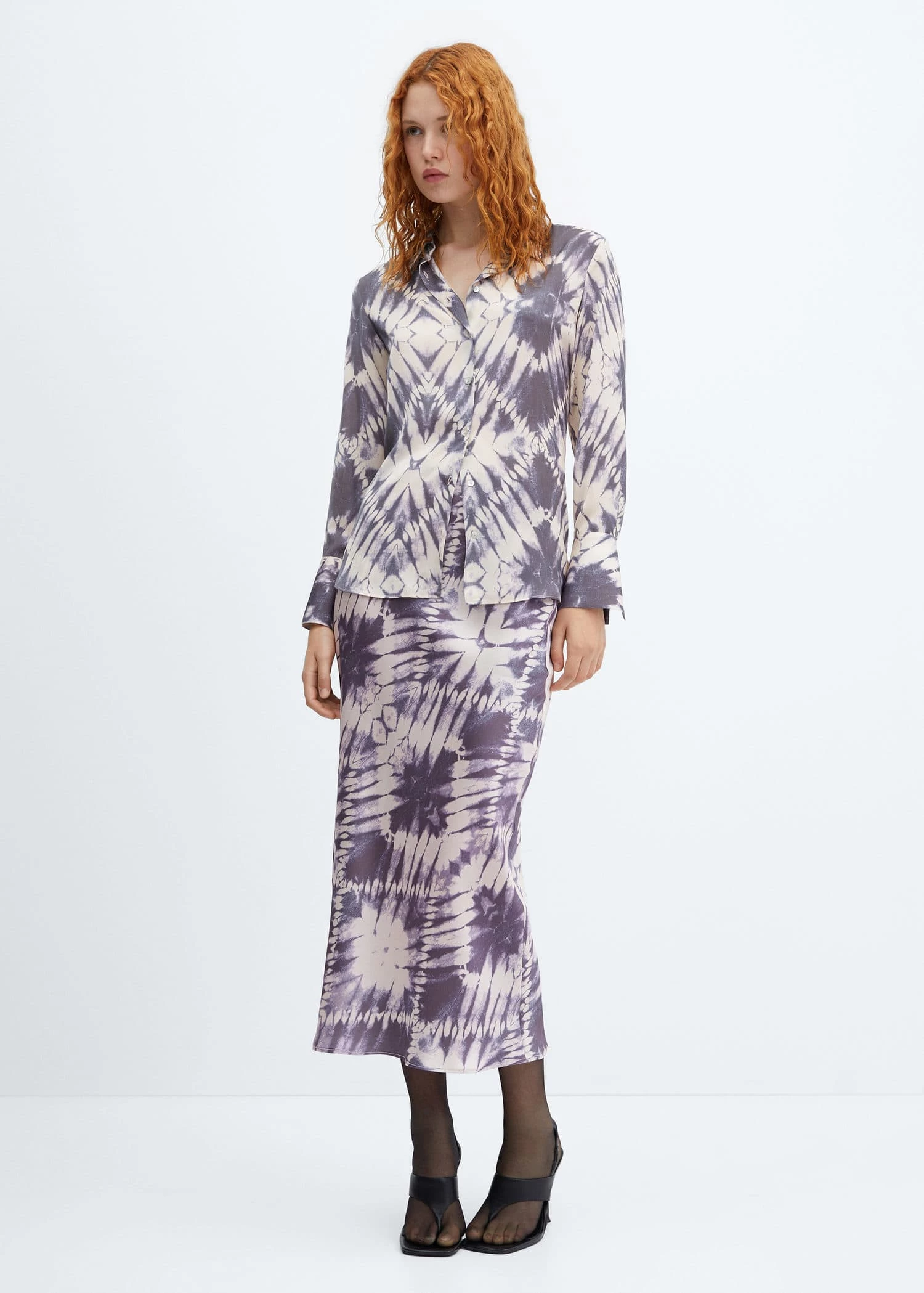 tissu satine, tissu fluide, imprime tie-dye, coupe midi, coupe droite, taille elastique, total look, disponible plusComposition: 71% polyester,29% elastomultiester