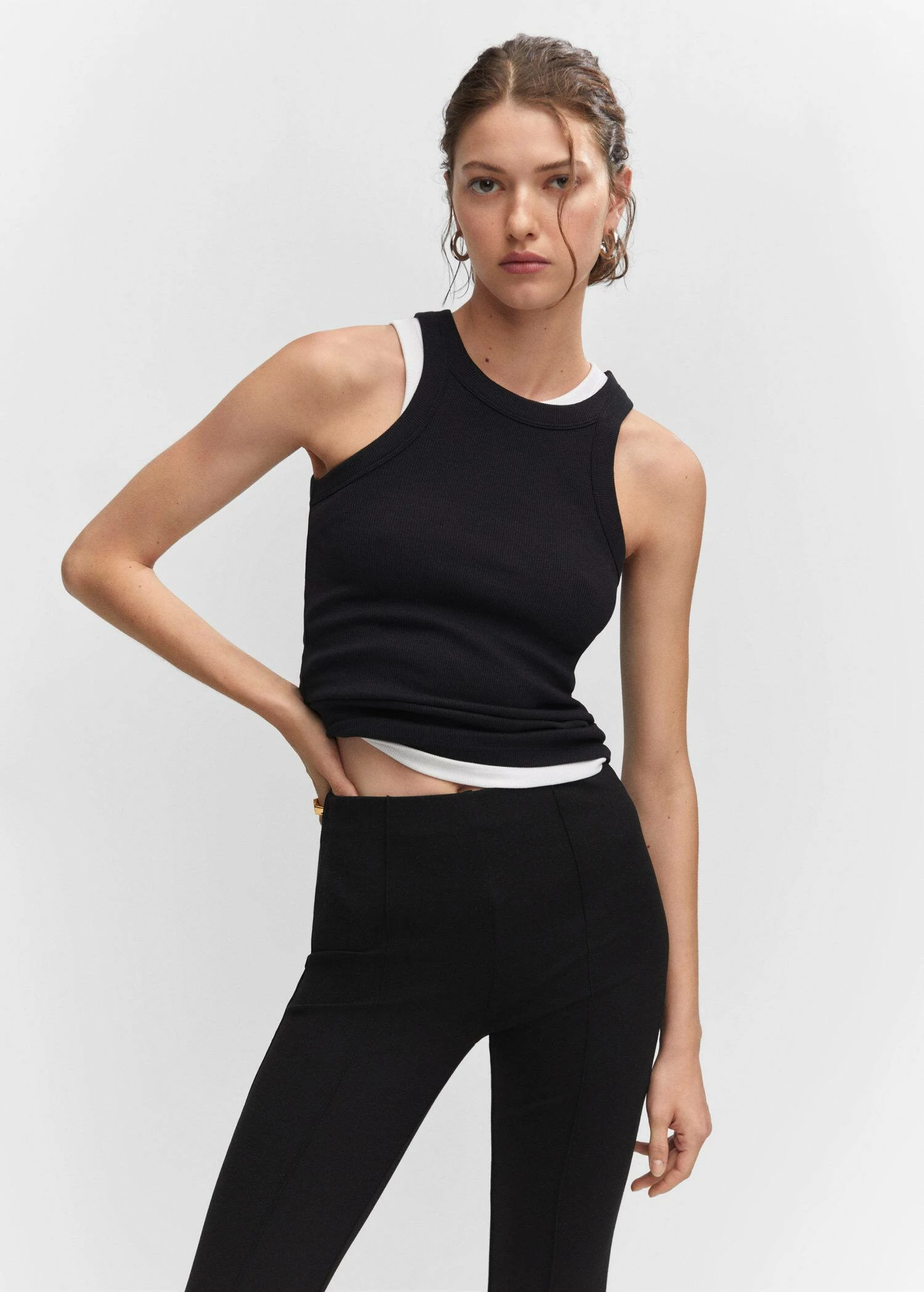 tissu elastique, ajuste, flare, coupe longue, taille normale, taille elastique, coutures decoratives, disponible plusComposition: 66% viscose,31% polyester,3% elasthanne