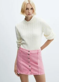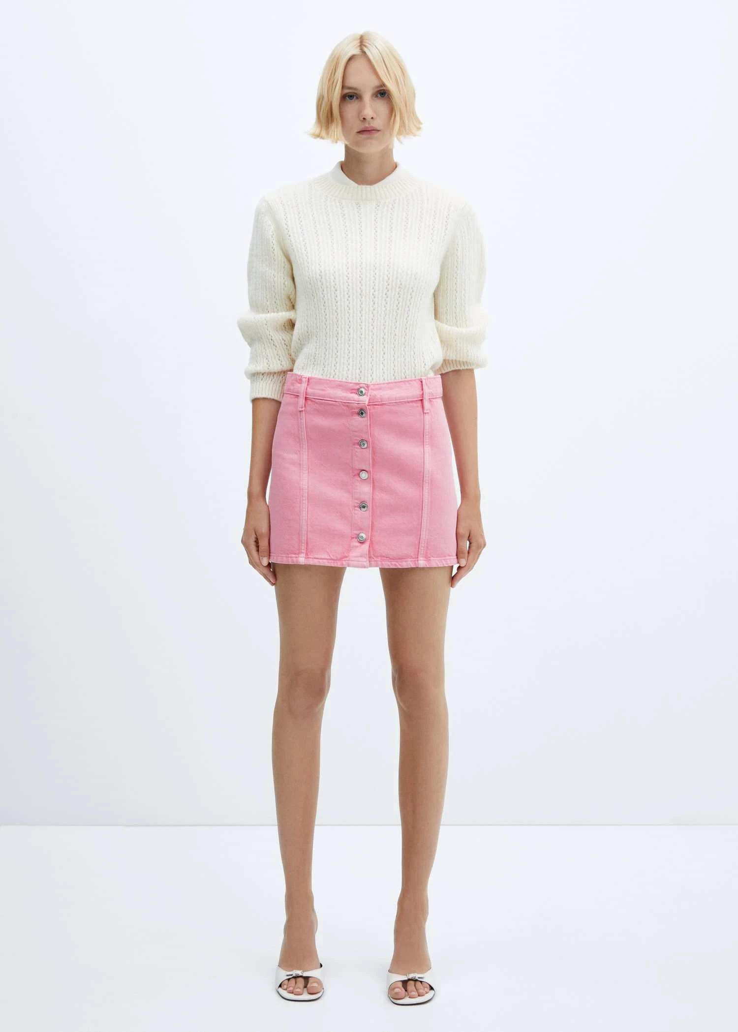 tissu en coton de style jean, coupe courte, droit, fermeture boutonnee sur le devant, passants pour la ceinture, coutures decoratives, total look, le mannequin mesure 179 cm et porte une taille 36Composition: 100% coton