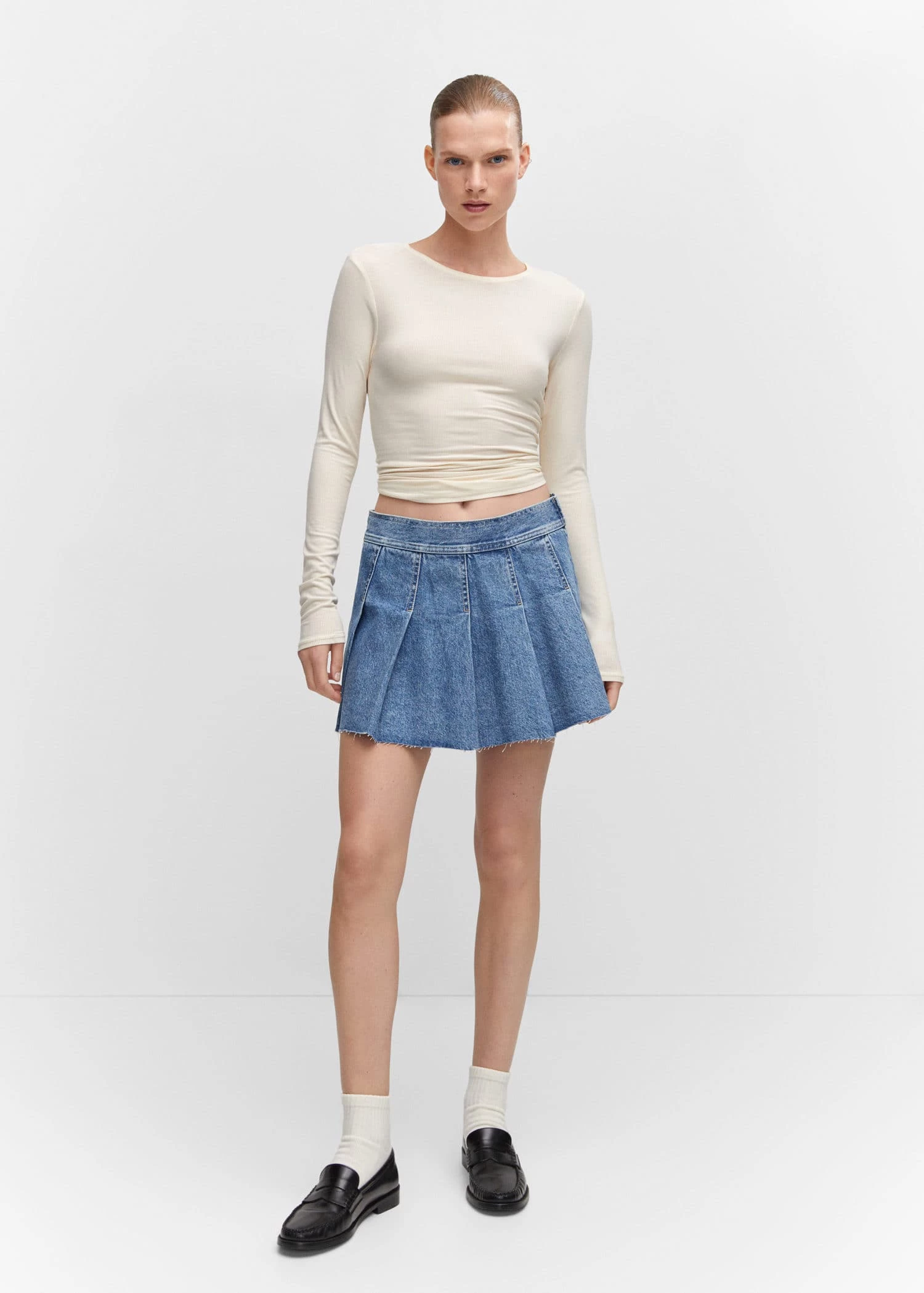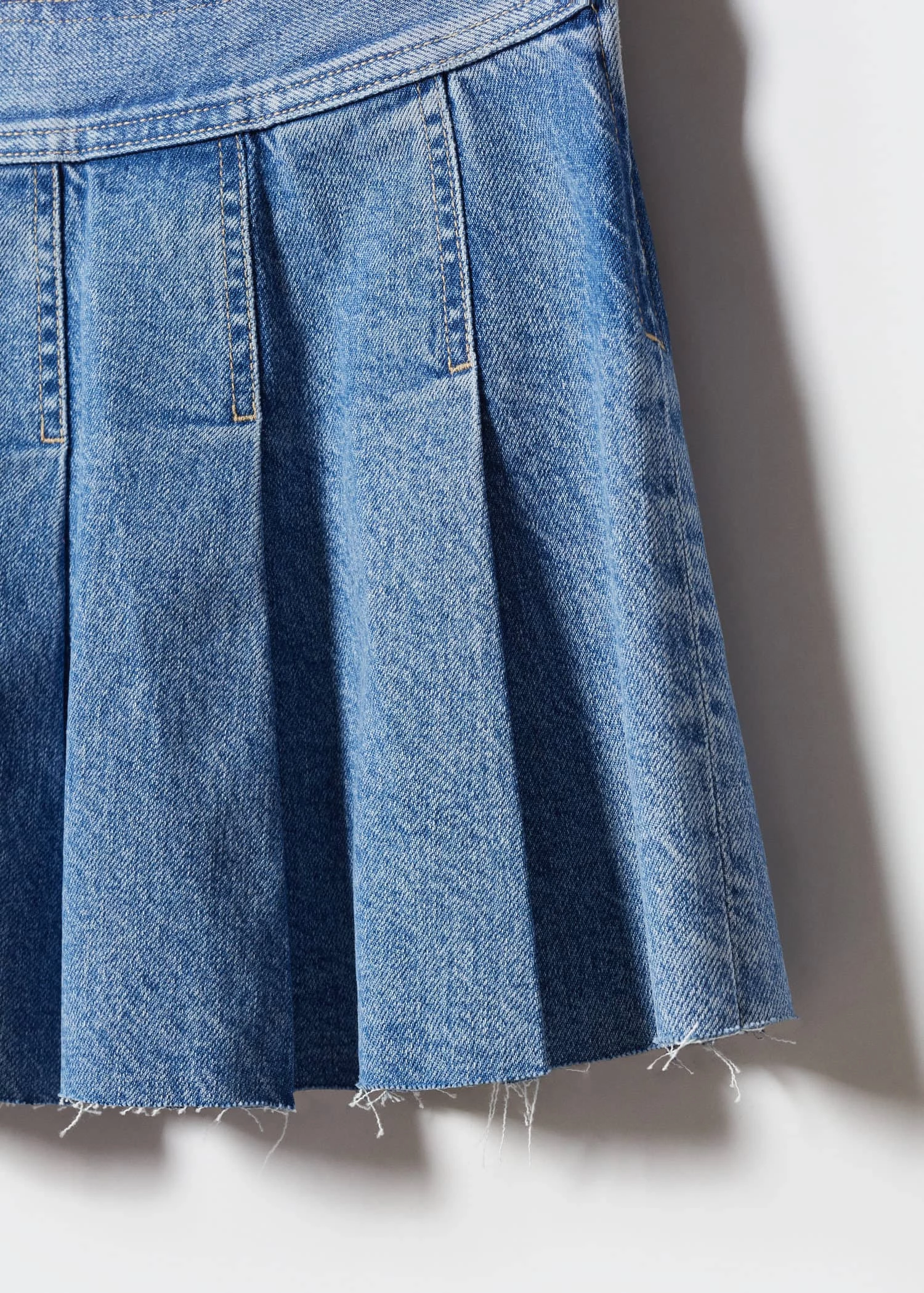 tissu en coton de style jean, gros plis, coupe courte, taille basse, bas effiloche, fermeture eclair laterale, total lookComposition: 100% coton