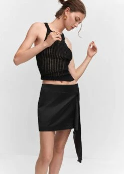 tissu fluide, tissu satine, taille normale, coupe courte, fermeture eclair laterale, lanieres decoratives, collection fetes et ceremoniesComposition: 100% polyester. Doublure: 100% viscose