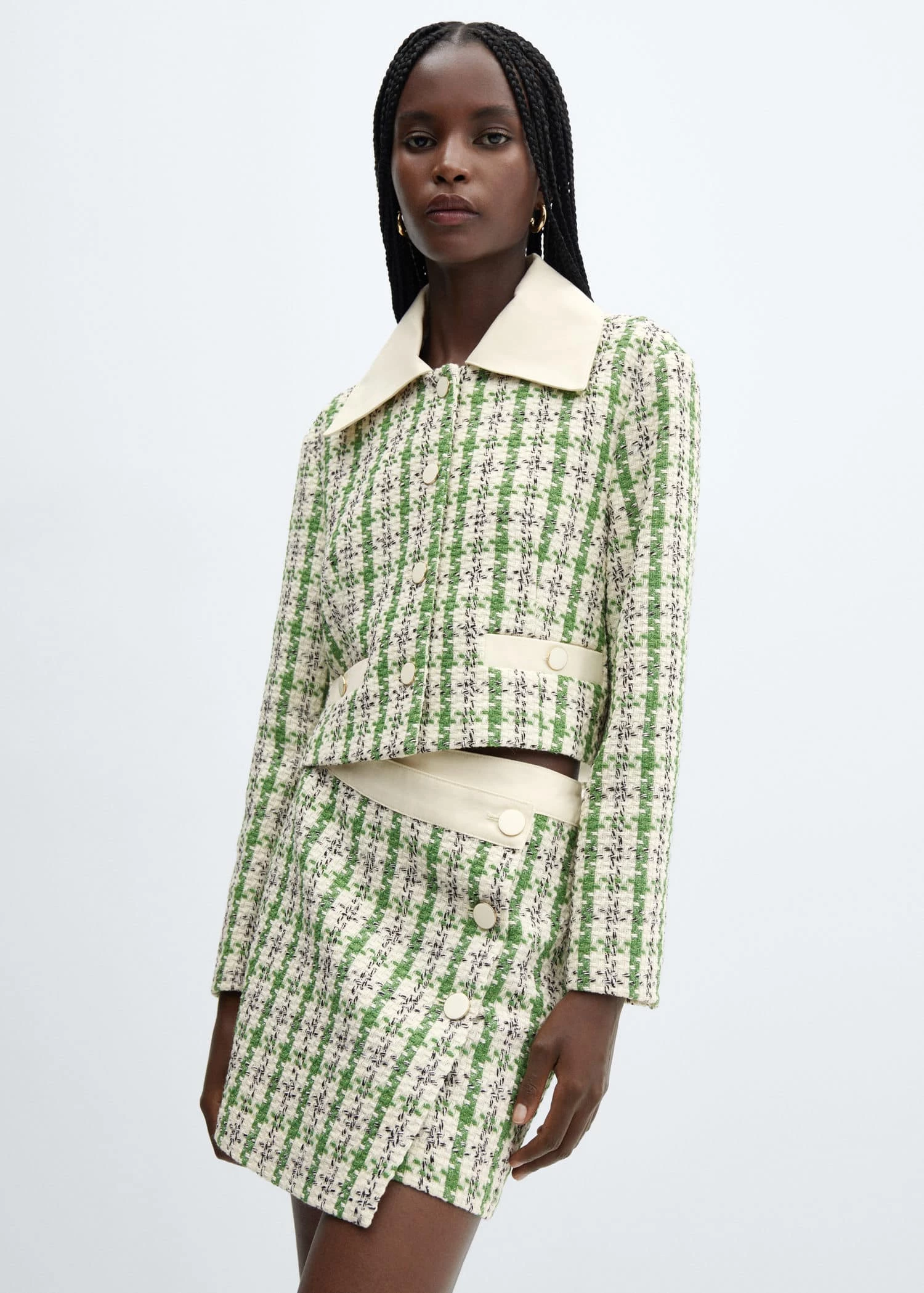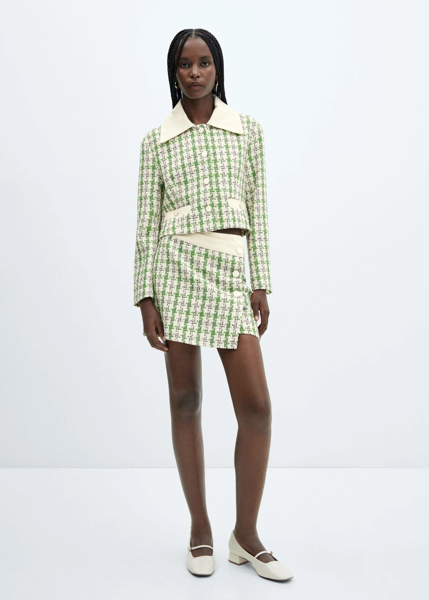 tissu tweed, coupe droite, coupe courte, taille normaleComposition: 76% polyester,15% acrylique,7% polyamide,2% coton