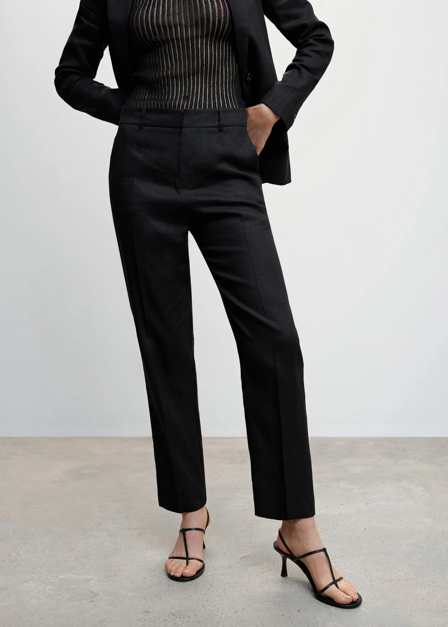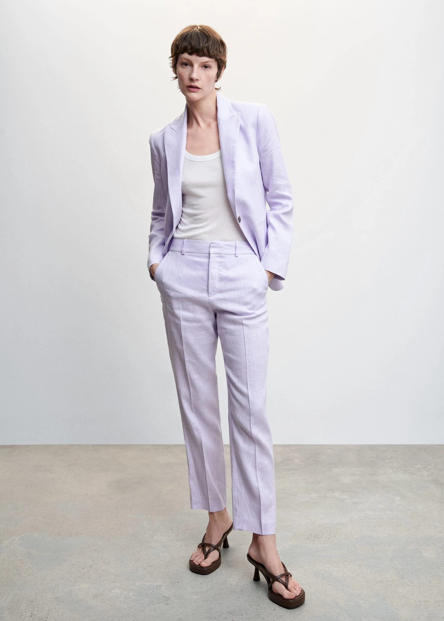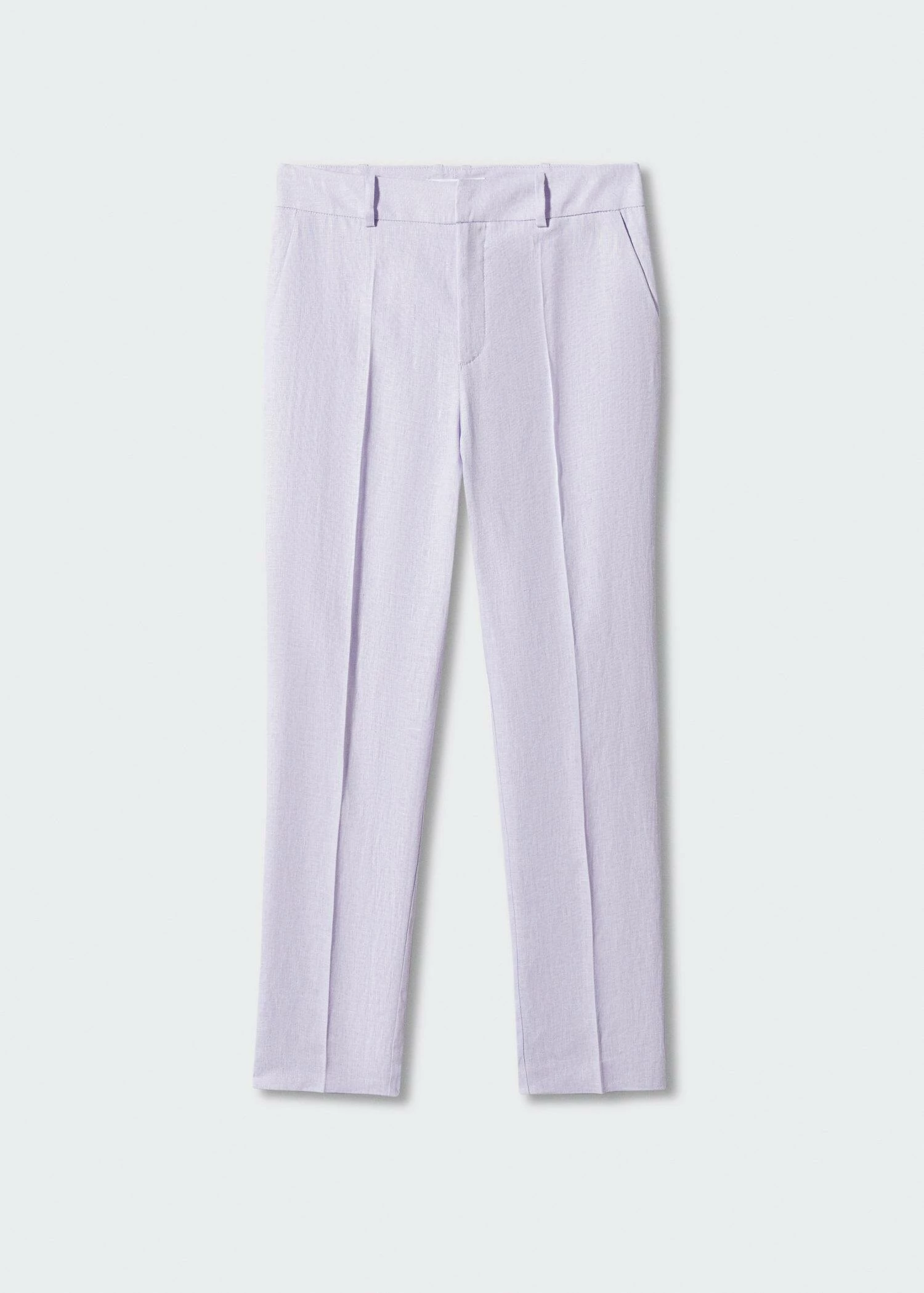 100 % lin, coupe droite, style costume, pinces, bracelet de cheville, taille haute, passants pour la ceinture, deux poches laterales, total look, disponible plus, la couleur violet clair est une exclusivite en ligneCOMPOSITION:100% LIN. DOUBLURE:100% COTON. LISIERE:100% COTON