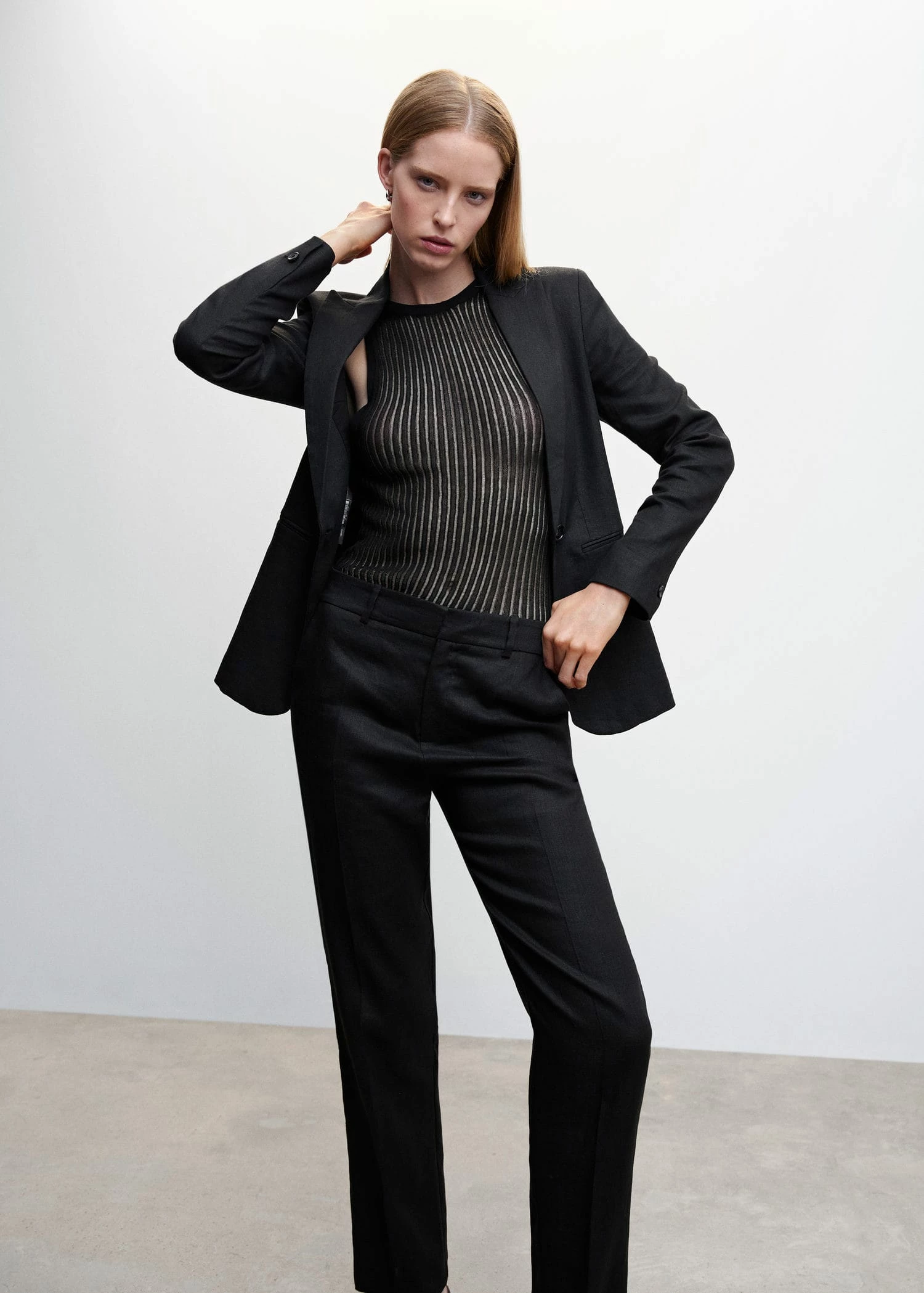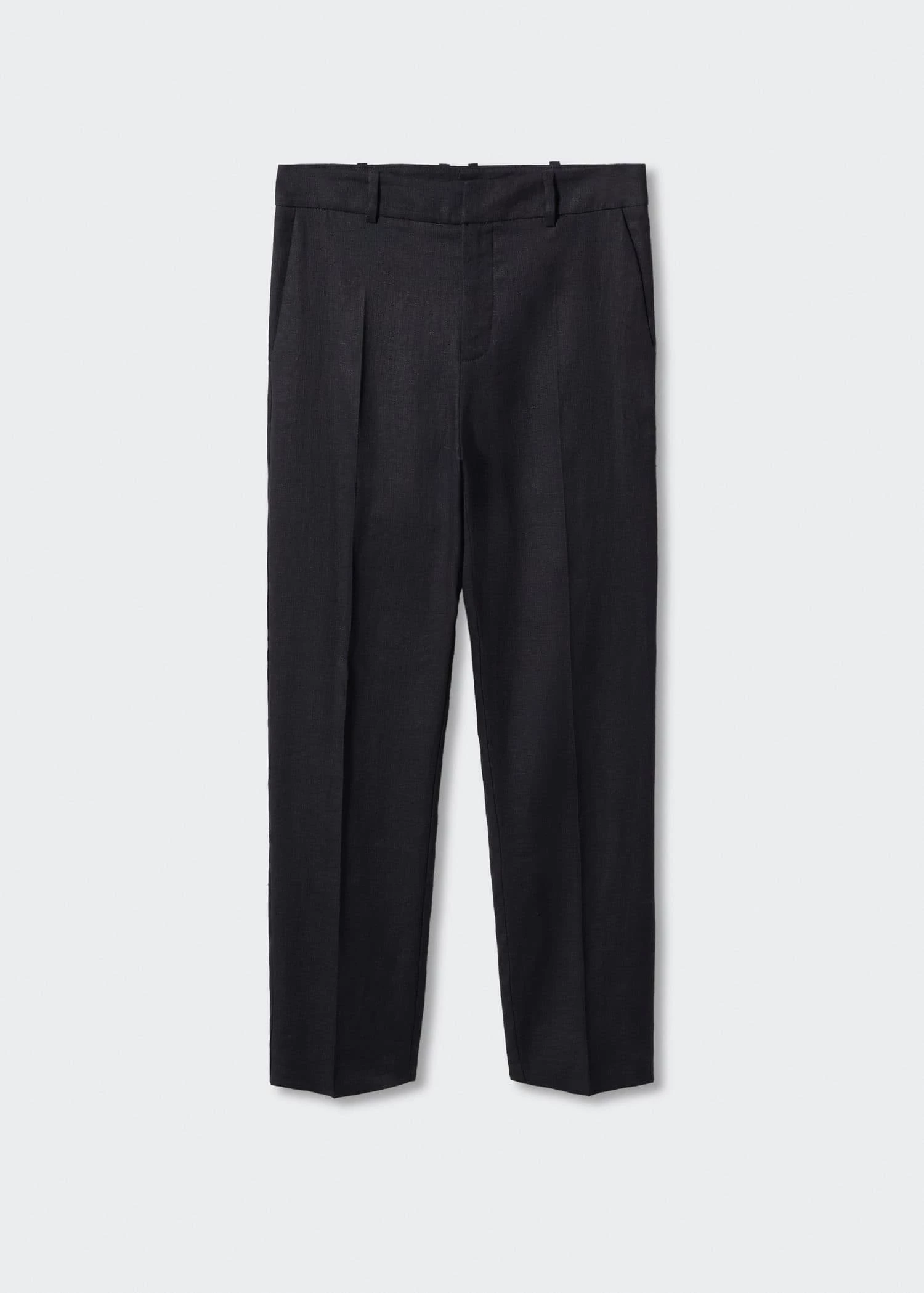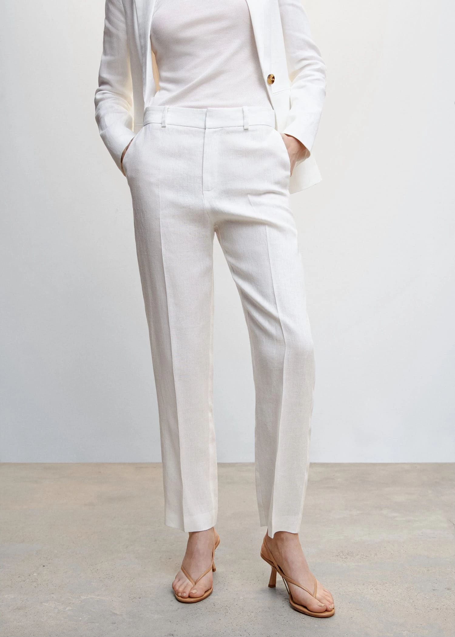 100 % lin, coupe droite, style costume, pinces, bracelet de cheville, taille haute, passants pour la ceinture, deux poches laterales, total look, disponible plus, la couleur violet clair est une exclusivite en ligneCOMPOSITION:100% LIN. DOUBLURE:100% COTON. LISIERE:100% COTON