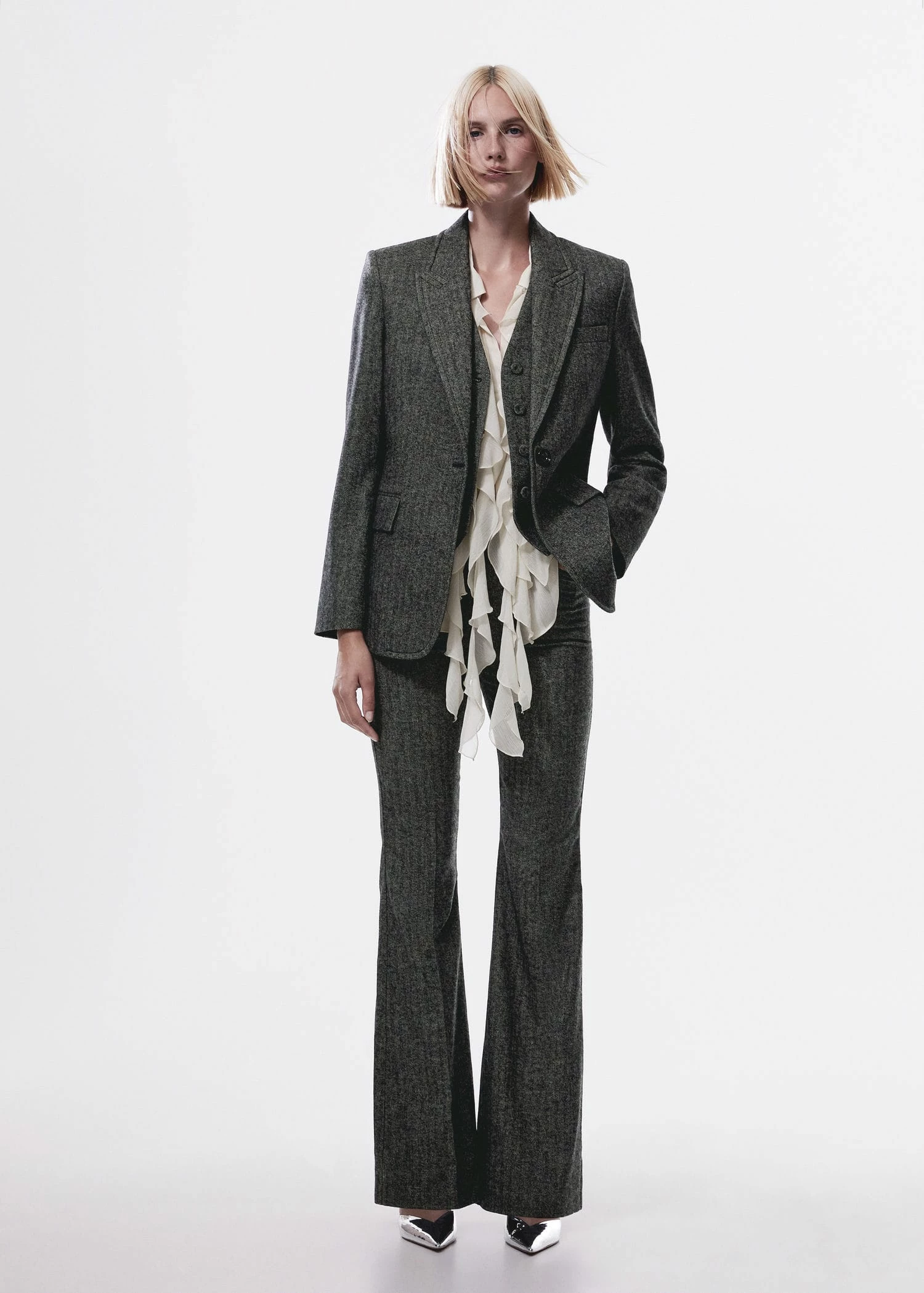 tissu de laine melange, coupe longue, flare, taille normale, trois poches avant, fermeture eclair avec crochet et bouton dissimules, passants pour la ceinture, detail plisse, total lookComposition: 40% polyester,30% laine,30% viscose. Doublure: 52% viscose,48% polyester. Lisiere: 52% viscose,48% polyester